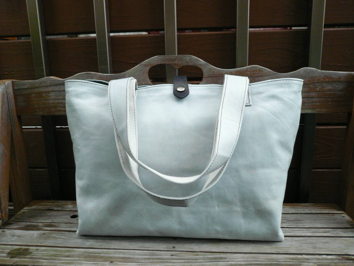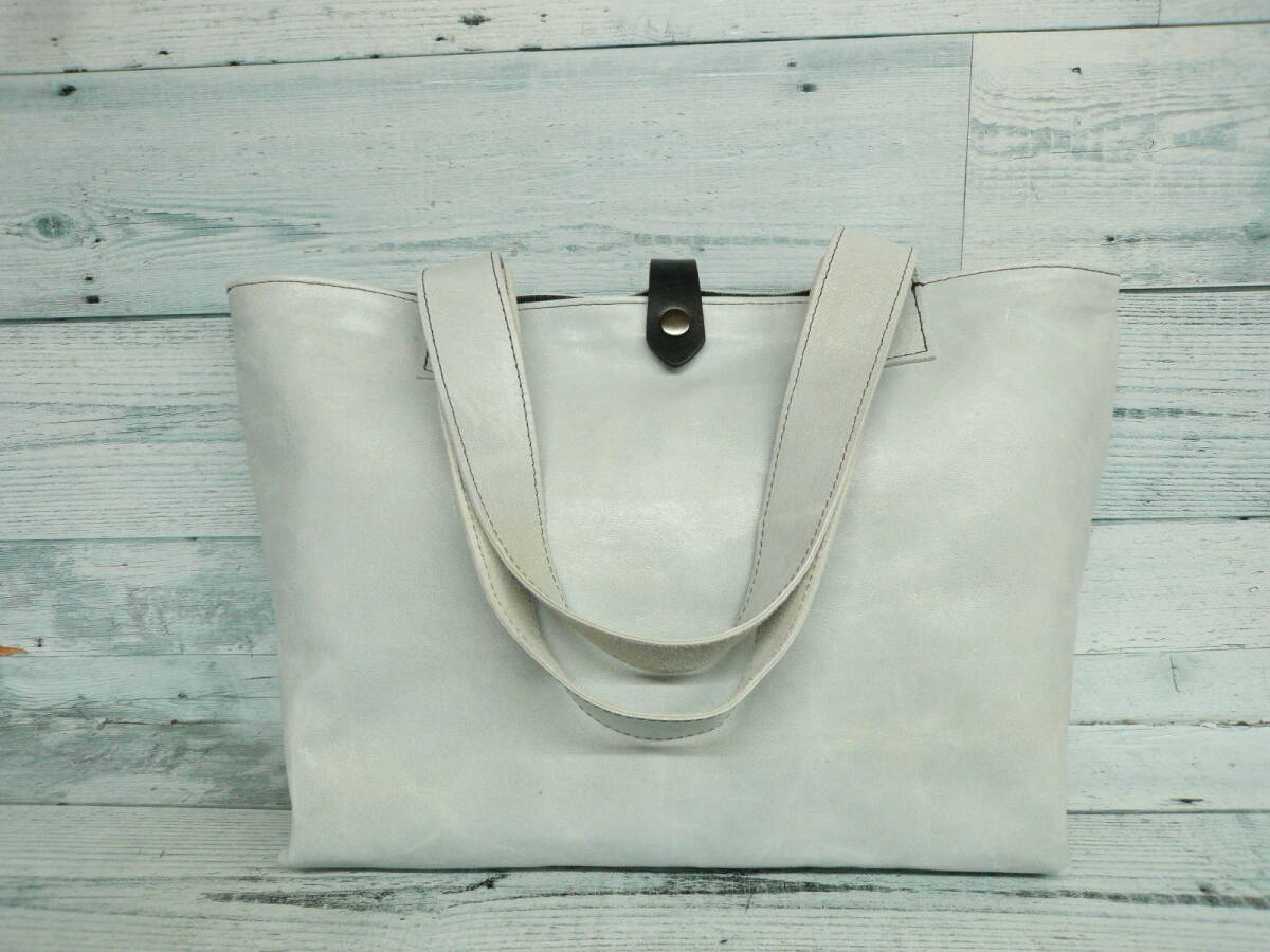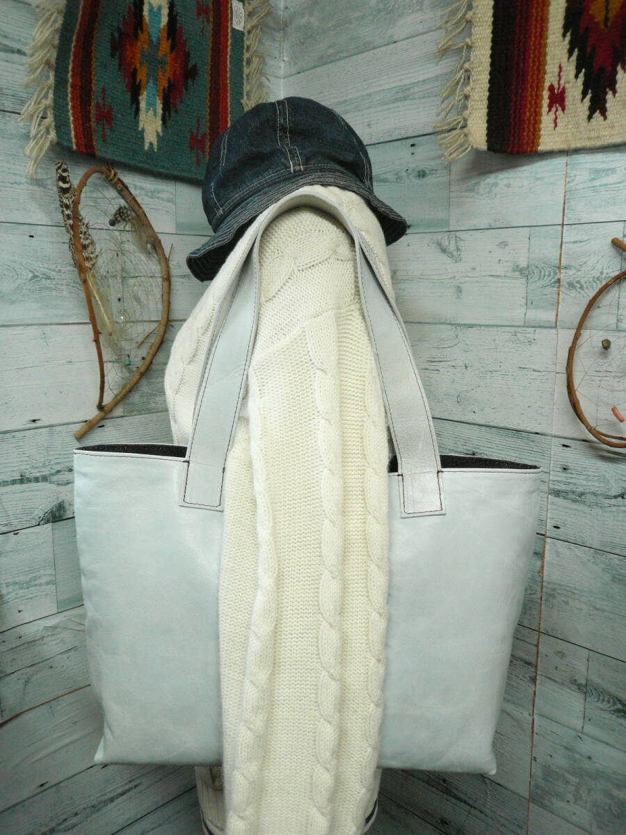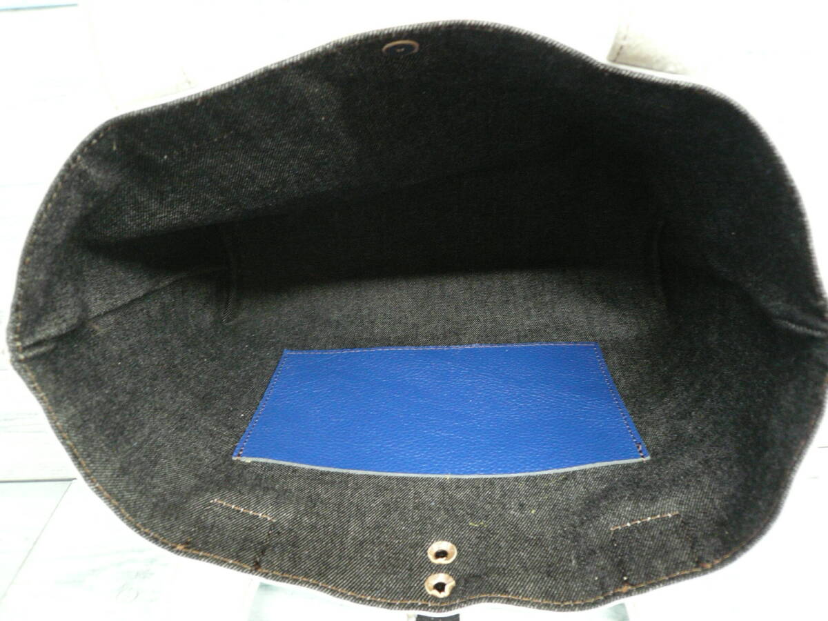 【トートバッグ レザーバッグ 天然皮革】しっかり裏地付 デニム生地 内ポケット 留め部分ヌメ革 作家手作り日本製BAG 668