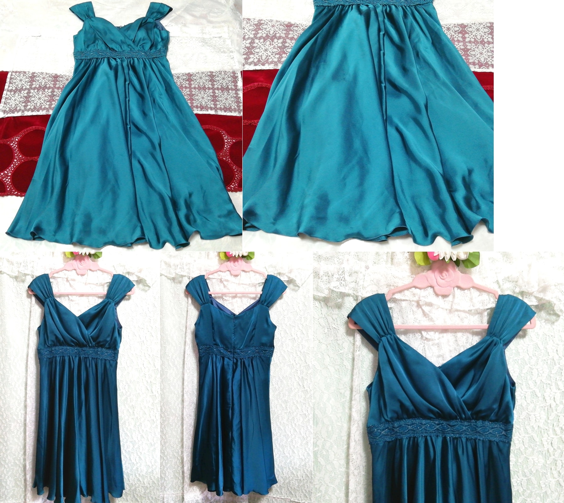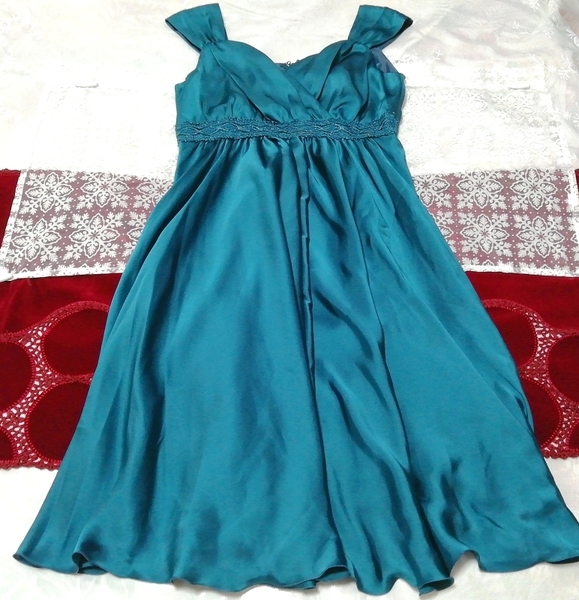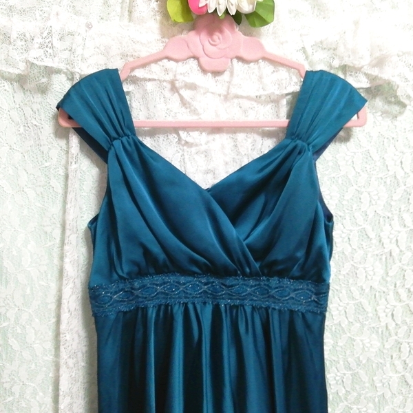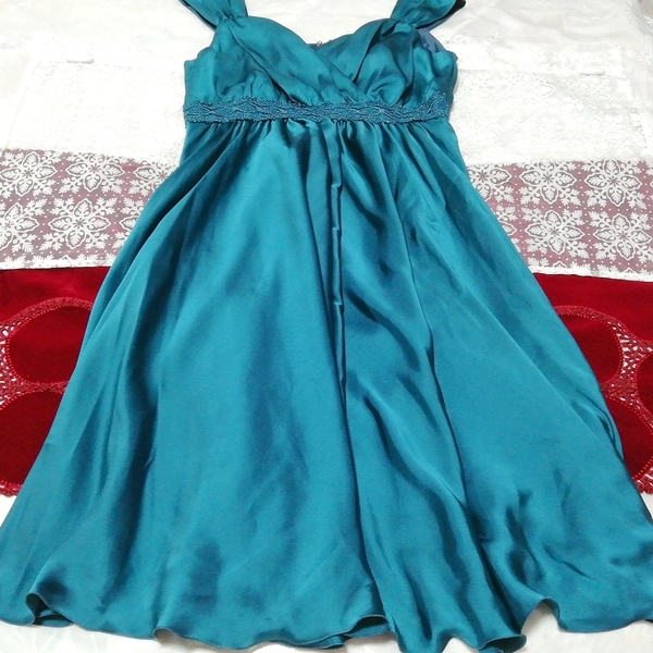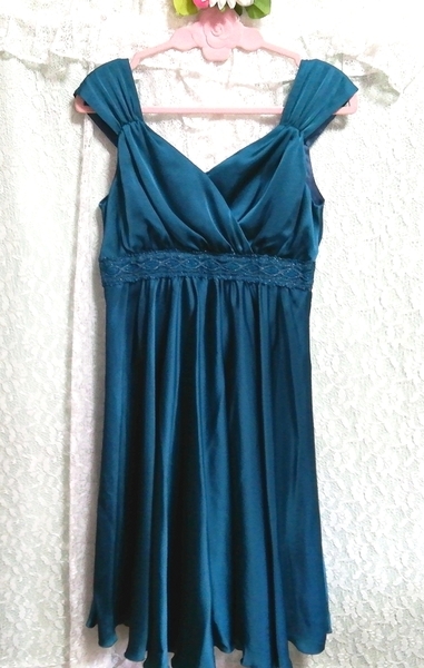 緑サテンフレア ネグリジェ ナイトウェア ノースリーブワンピースドレス Green satin flare negligee nightwear sleeveless dress
