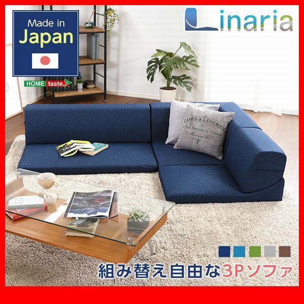 【ポイント】 こたつやローテーブルにピッタリな日本製コーナーローソファです。 3つのパーツを自由に組み替え可能です。 1P、2Pの背もたれを倒せば、横になるのにちょうどいい角度に! ファブリックの落ち着いた5カラーがございます。 |