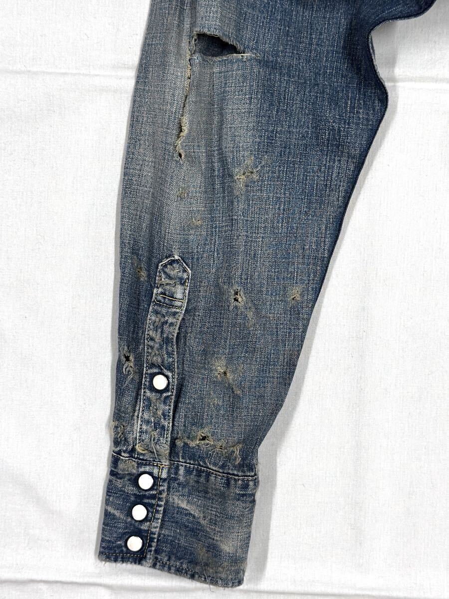 SAINT MICHAEL M×××××× DENIM SHIRT セント マイケル ビンテージ加工 デニムシャツ SM—A23-0000-015 インディゴ Mサイズの出品です。