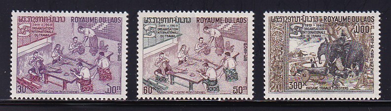 73 ラオス【未使用】<「1969 SC#190-191,C58 ILO50年」 3種完 >