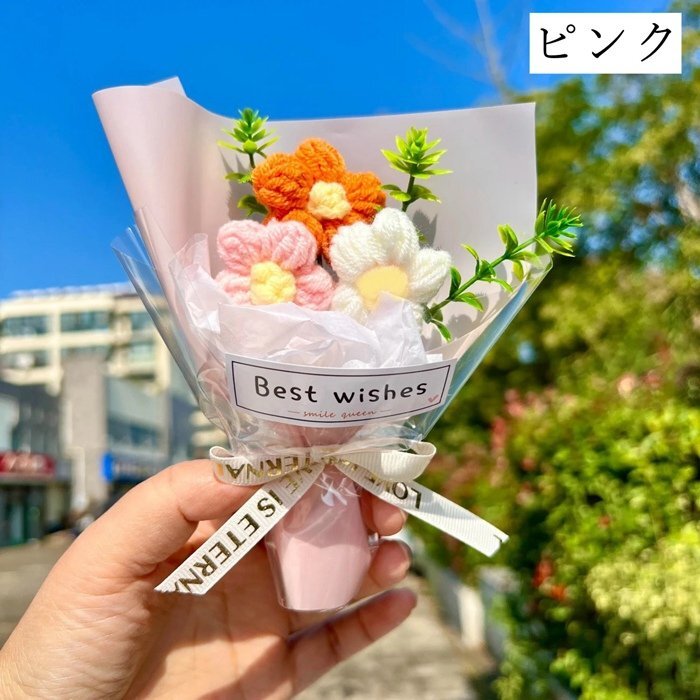 ニットブーケ 手作り花 ミニサイズ ニットフラワー かぎ針編み ミニブーケ 毛糸 カラフル 可愛い 手つくり 子供 花束 造花 飾り ギフト プレゼント 母の日 記念日 敬老の日 成人式 卒業式 バレンタイン クリスマス お祝い 推し活 結婚記念日 父の日 誕生日 枯れない花 贈り物 七夕 ホワイトデー
