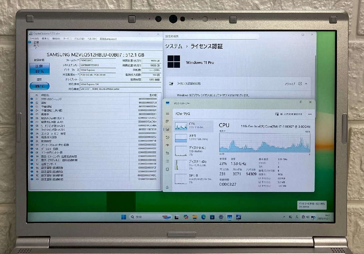 | ライセンス確認 | 〇 | CrystalDiskinfo | 〇 |