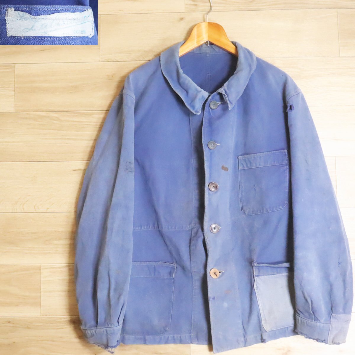 ?7Y/R5.15-7 50s~ フレンチヴィンテージ ワークジャケット カバーオール コットン 襤褸 ボロ ユーロワーク ビンテージ メンズ