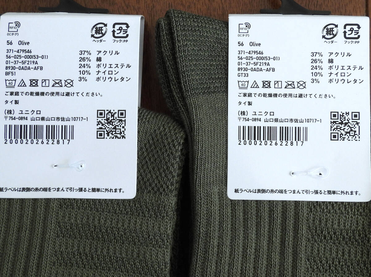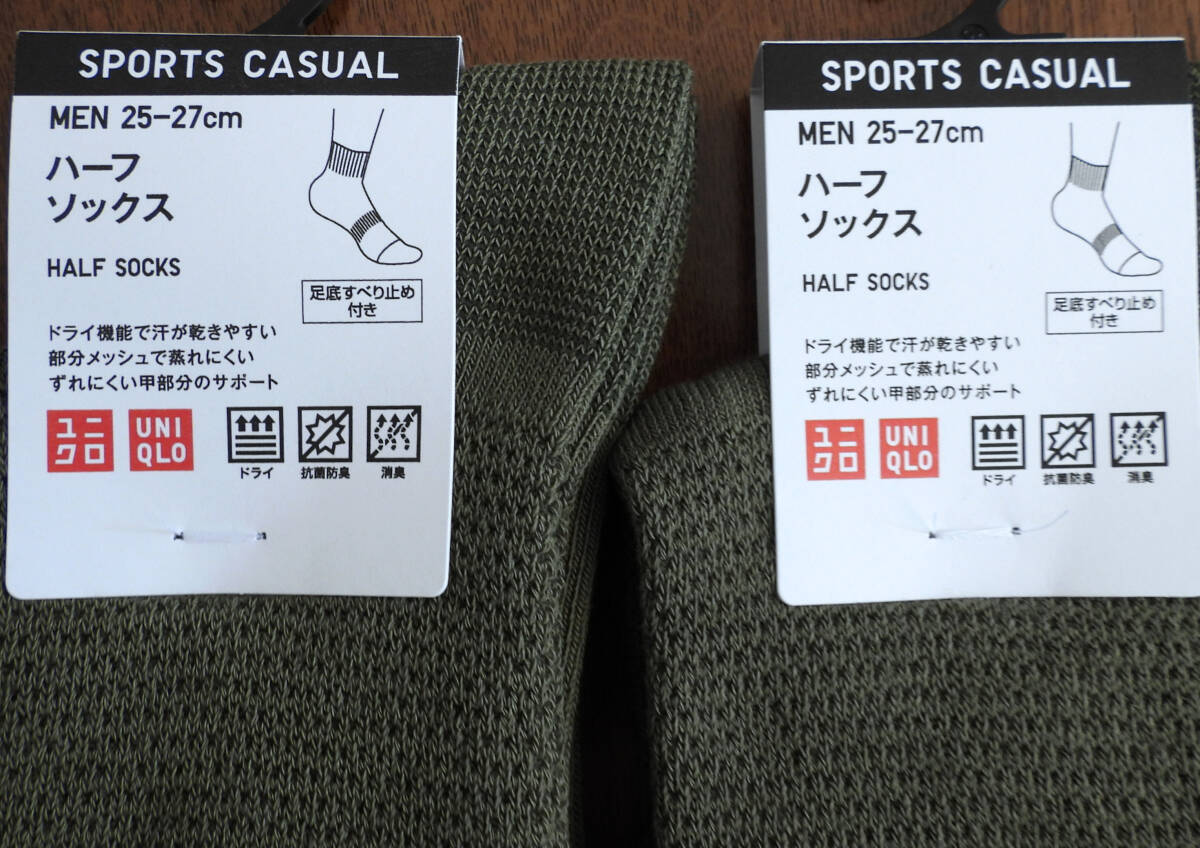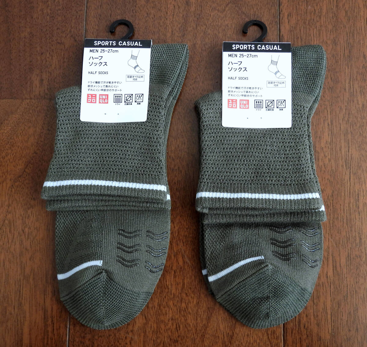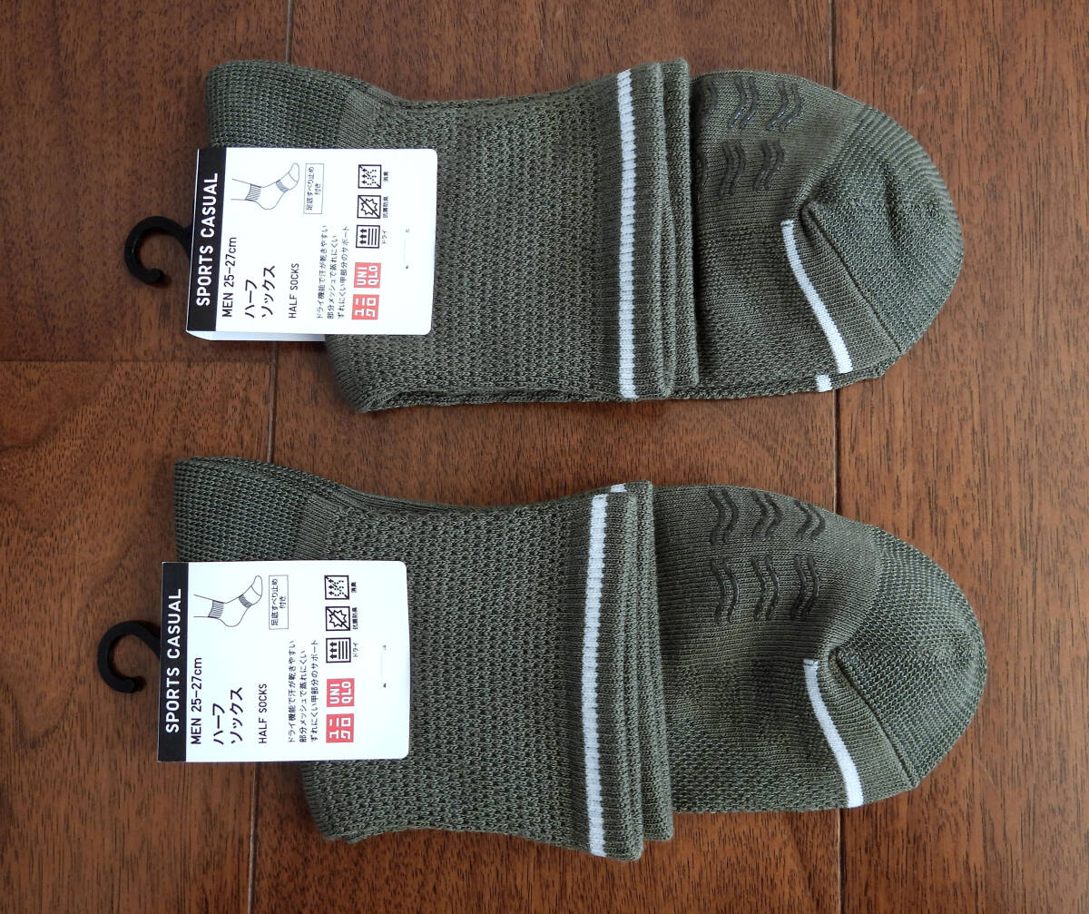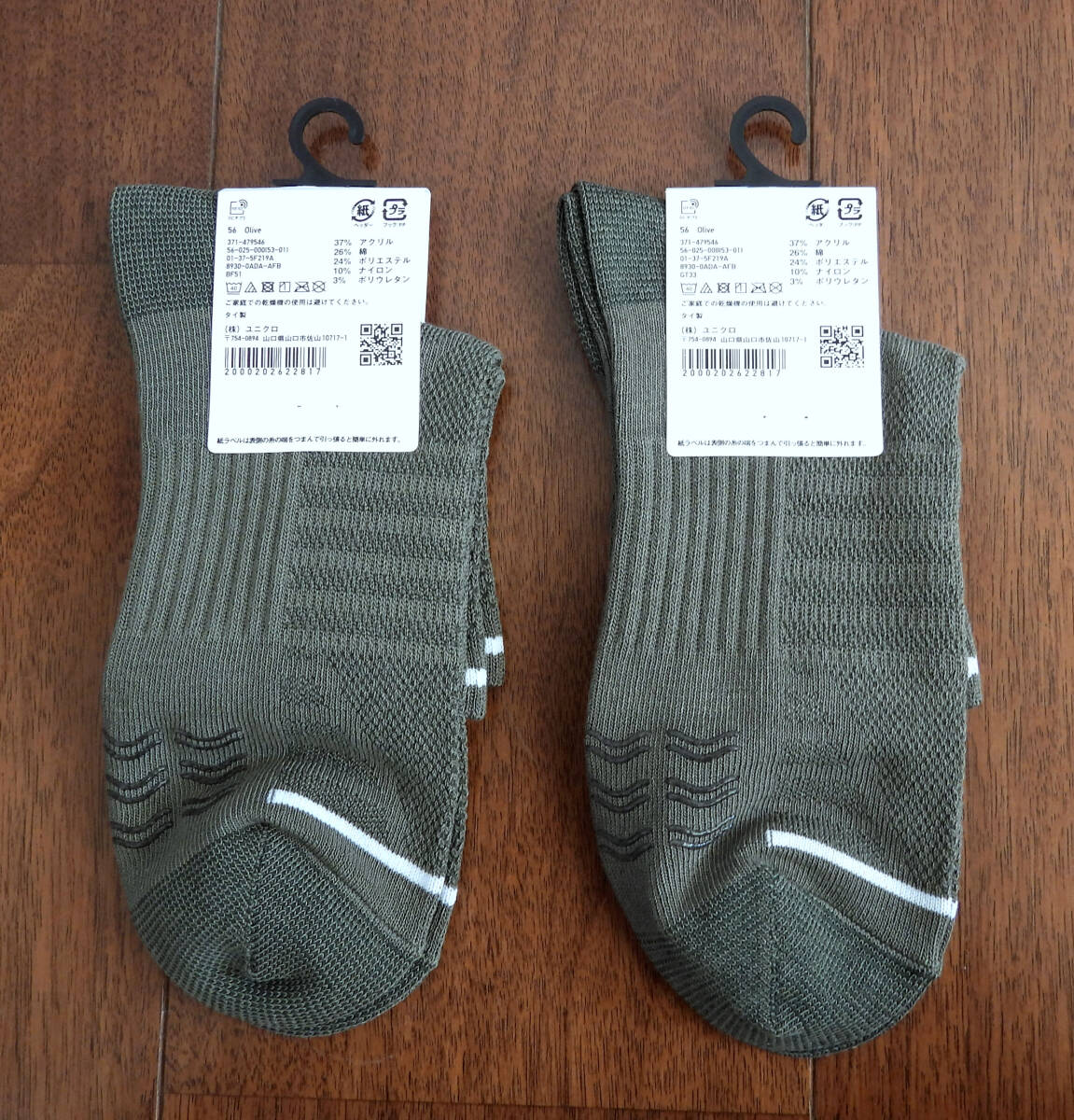 ユニクロ UNIQLO スポーツハーフソックス 2足セット MEN 25-27cm オリーブ【新品未使用】