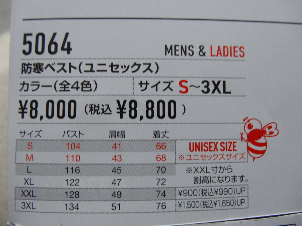 バートル5064 防寒ベスト ストームグレー XL寸 4300円(税込み)