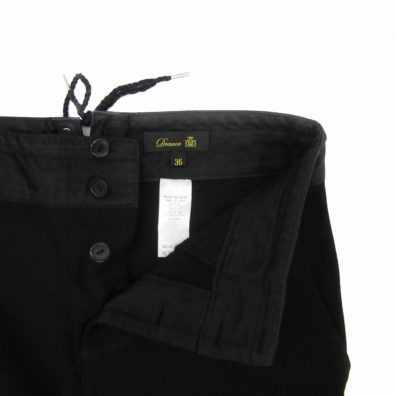 ドゥロワー Drawer テーパードパンツ 七分丈 無地 ボタンフライ 36 S 黒 ブラック 6514-105-0147 /YS13 IBO83 レディース