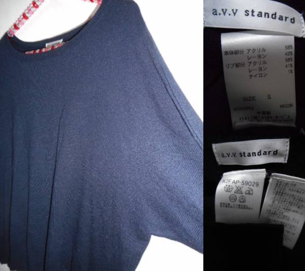 | a.v.v standard アーヴェヴェ ラグラン薄手袖ニット S 紺 | |||