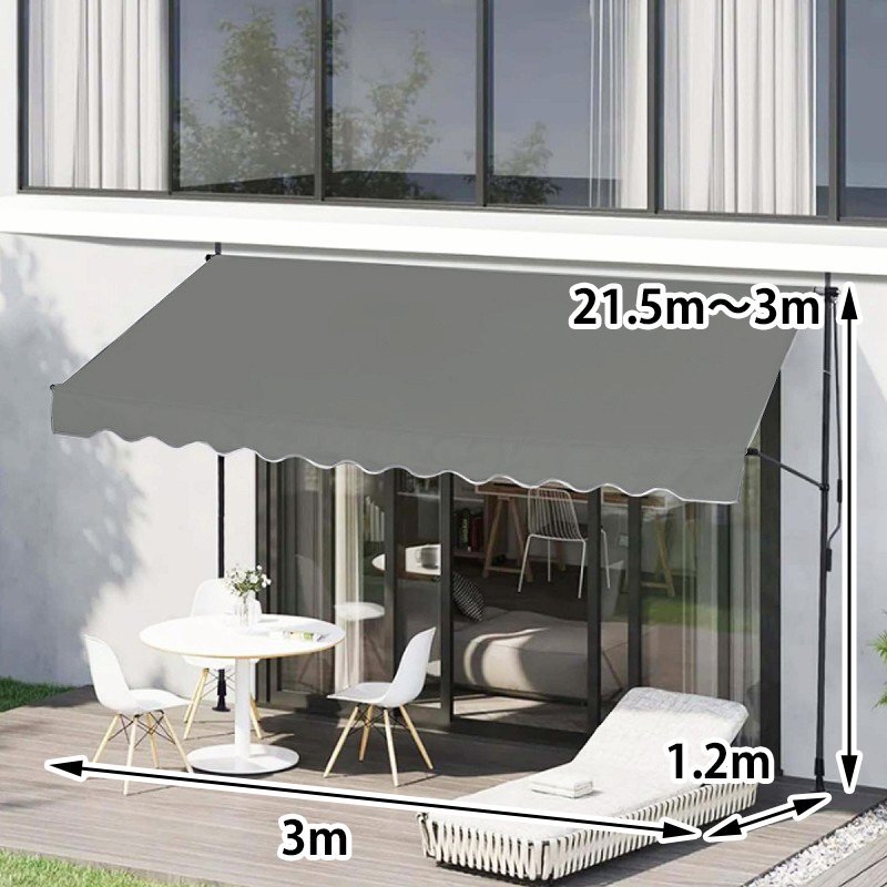 ![]() お庭をオシャレなオープンカフェの様な空間に仕上げてくれる つっぱり式のオーニングテントです。 工事不要のつっぱり棒を用いたオーニングなので ネジ固定のタイプとは異なり、気軽に設置出来ます。 本体の高さも幅広く伸縮できるので、シーンや天井の高さに合わせて 簡単に調節してお使い頂けます。 日の傾きに合わせて自由に角度調整可能で、 スタンド部分のハンドルをくるくる回すだけ無段階で調整可能。 テントの角度を下げればサンシェードの様に目隠しや仕切りに、 全開にすれば太陽光を取り込めるオープンタイプに。 お好みの角度に合わせてお使い下さい! UVカット加工が施された生地なので強い紫外線からしっかりと防いでくれます、 水も弾く撥水加工も施されているので突然の雨でも安心。 汚れにも強いので長くお使い頂けます。 スタンド部分は圧力をかけてしっかり固定できるジャッキ式スタンドなので ゆるみやブレ、滑りに強い安心設計です。 ※簡易外国語説明書付き 商品詳細 サイズ(約):高さ2.15~3m×幅3m×奥行き1.2m 材質 ・テント部分:ポリエステル(撥水加工) スタンド部分:アイアン ・カラー:ライトグレー |