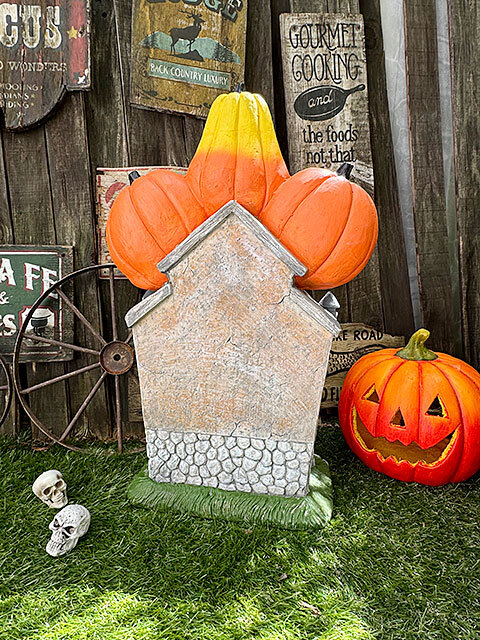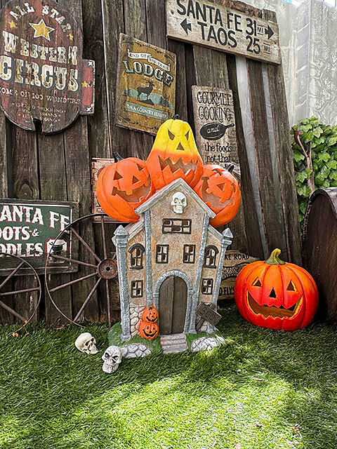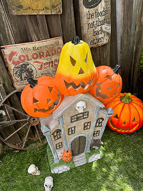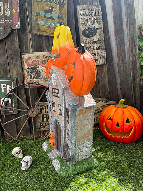 高さ76cmもあるガーデンオブジェなので、これを玄関先や、庭、ウッドデッキなどに飾るだけで、一気にハロウィン仕様にしてくれるからねー