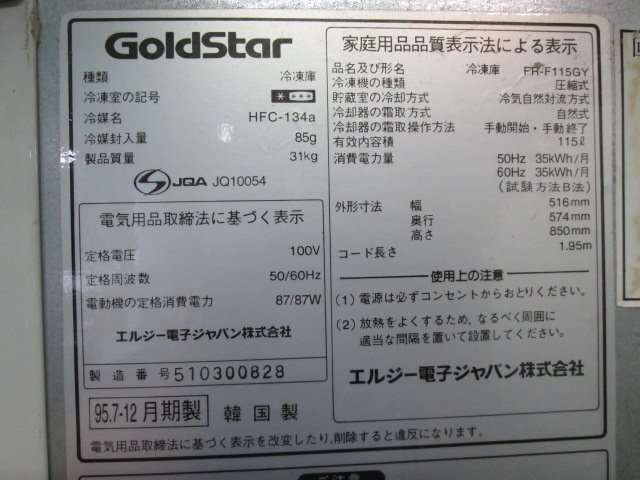 メーカー:LG電子 型式:FR-F115GY 年式:1995年 USED(ユーズド) 取扱説明書ありません |