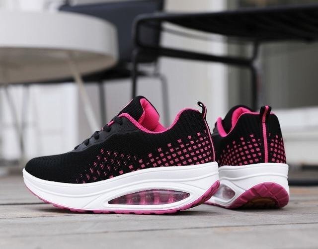 クッションシューズ 厚底スニーカー レディース ダイエットシューズ ナースシューズ 姿勢矯正 厚底 船型底 ピンク 23cm