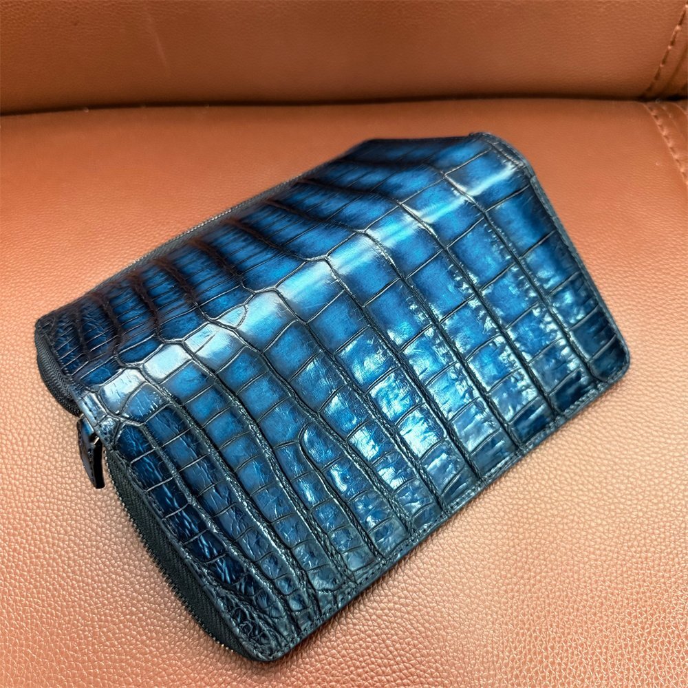 極上の素材感を誇る最高級アメリカアリゲーターを独創的な手染めパティーヌで仕上げられたブランドならではの逸品。