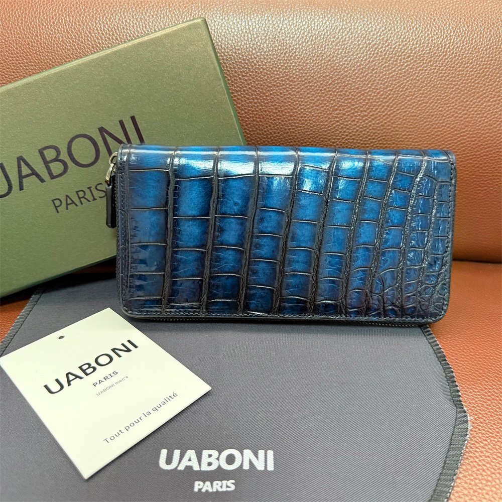 上質 限定EU製&定価68万◆UABONI*アメリカアリゲーター・ファスナー長財布◆高級 レア 手染 パティーヌ クロコ ワニ革 本革 レザー メンズ