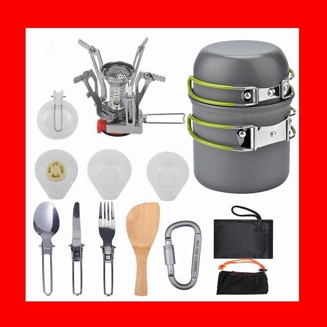 【コメント必要無く,直購入大歓迎】 【セット内容】:アルミニウム鍋*2,木製シャベル*1,食品レベルPPお碗*3,バーナー*1,スポンジ*1,スプーン*1,テーブルナイフ*1,フォーク*1,Dリング*1,小さな布バッグ*1,メッシュバッグ*1 【商品仕様】 【色】:グレー。 【素材】:アルミニウム合金。 【サイズ】:約17.5 x 12.5 x 12.5cm。 【商品の説明】 このキャンプクッカー は耐久性がありプレミアム素材で製造されています。 輸送、組み立て、調理に必要なすべての機能が満載されています。 キャンプ体験をより楽しく便利にするために慎重に設計されています。 家庭用にもアウトドア用にも 野外料理を楽しむことができます。 【商品特徴】 -アルコールでの燃焼に直接使用。燃焼孔は熱効率を高めます。 -高温と重量に耐えることができる高品質のステンレス鋼で作られています。 -安定した調理プラットフォームを作成し、熱を均等に分散します。 -アウトドアキャンプ、ハイキング、登山用品に適した耐久性と実用性。 -アウトドア、キャンプ、ハイキング用のデザイン。 【食品級の材質】食品級の材質で作られ、熱の伝導が速く、高温と摩擦を耐えます。 【ステンレス鋼製】高温と重量に耐えることができる高品質のステンレス鋼で作られています。 【多様な用途】キャンプ、ハイキング、バックパック旅行、登山、BBQ、フィッシング、ピクニックなどに適しています。 【デザイン】アルコールでの燃焼に直接使用。燃焼孔は熱効率を高めます。 【注意】海外インポート品なので,製造上細かいところは日本製と比べられない場合がございます。ご理解の上ご購入ください。