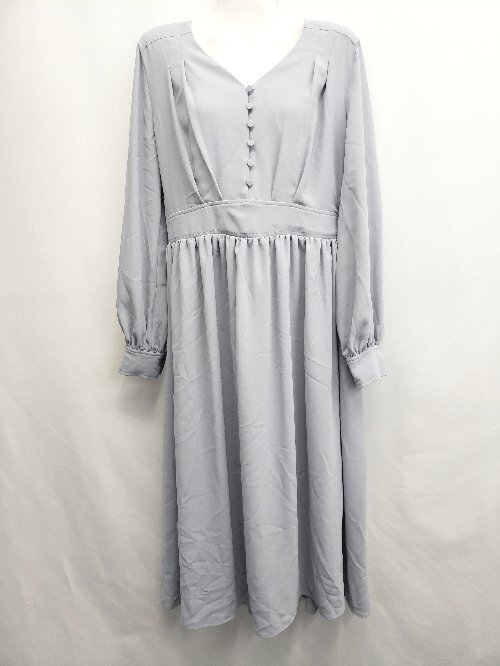 ◇ ⊂ N. Natural Beauty Basic エヌ フロントタック 長袖 膝下丈 ワンピース サイズM サックスブルー系 レディース E