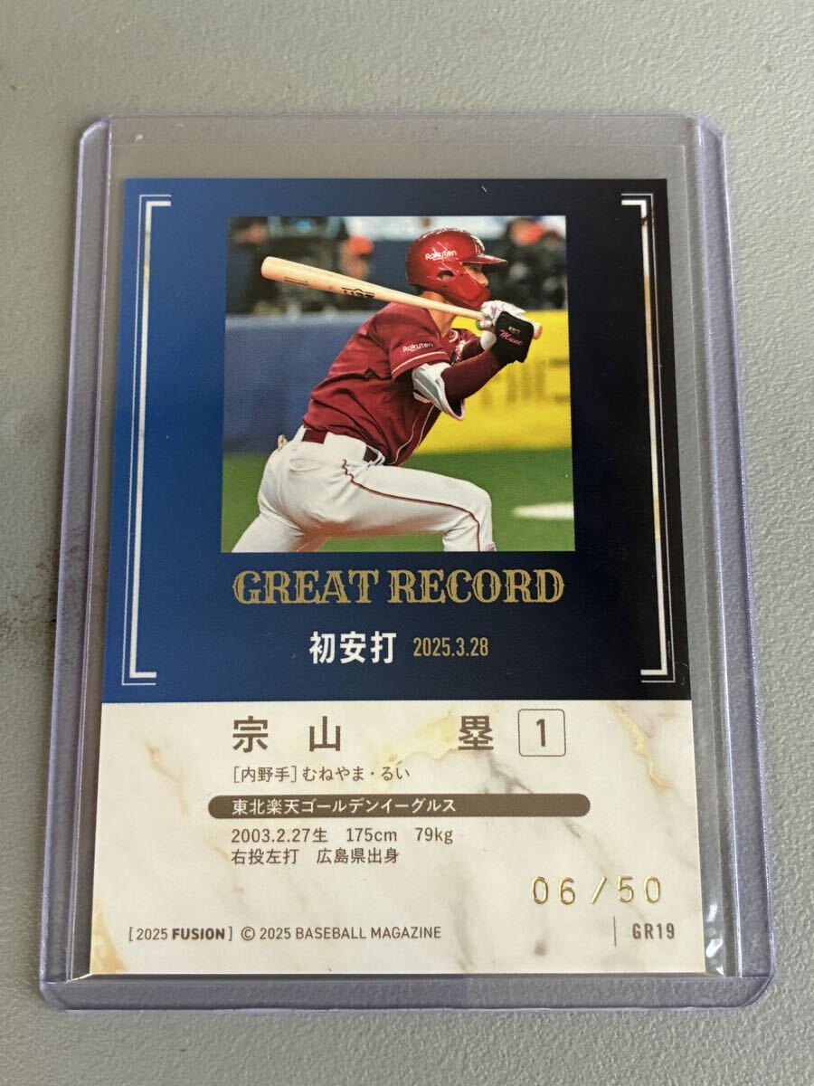 宗山塁 2025 BBM Fusion GREAT RECORD ホロ箔サインパラレル /50 初安打 東北楽天ゴールデンイーグルス ルーキー ベストナイン RC