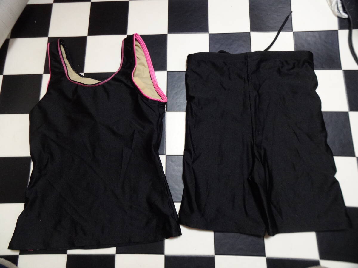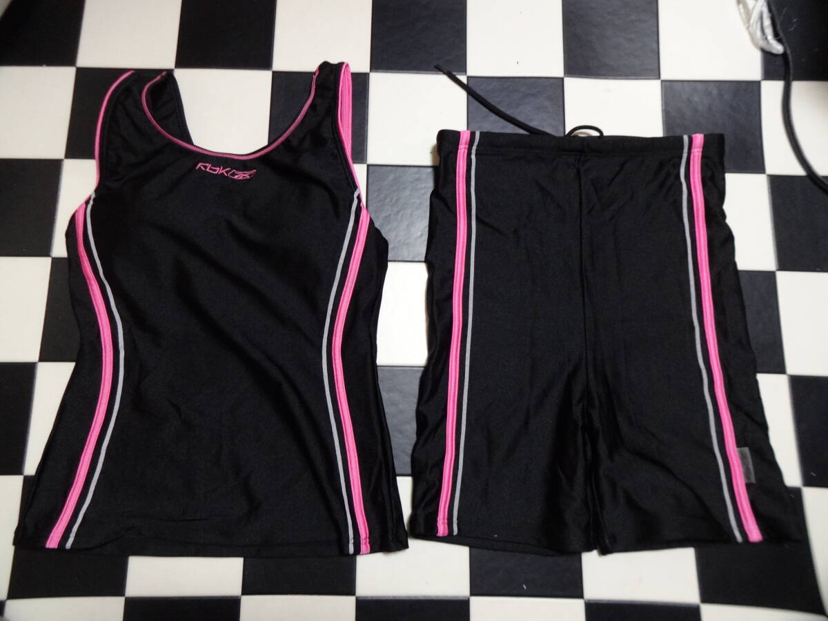 RRRBOK 女性水着セパレート サイズM D7616 光沢黒ピンクライン 上下をつなぐホックなし