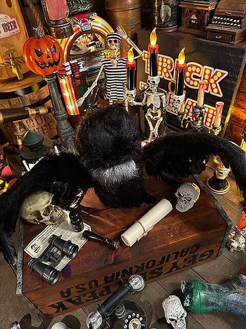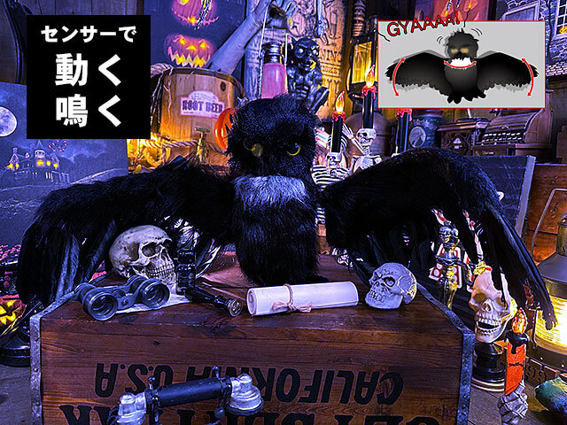音センサーが反応して、不気味な鳴き声と共に、バサバサと羽根を羽ばたかせるというホラー系のムービングオブジェ!