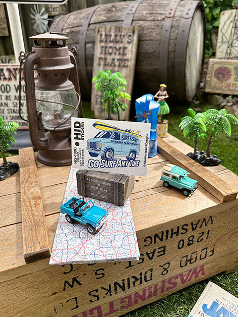 ハワイのアチコチで目にする日常をクルマ好きの視点から描いたハワイアンステッカーです。