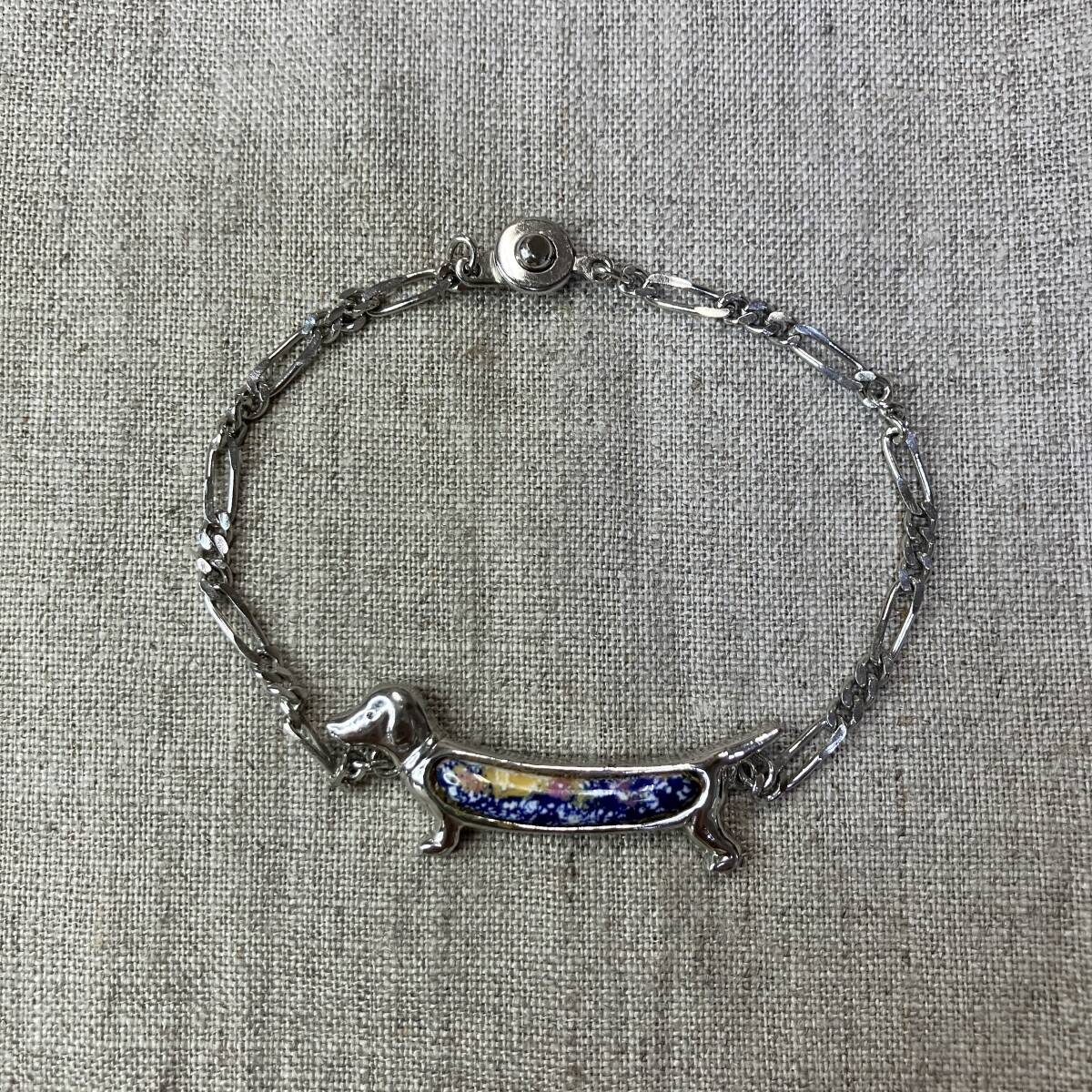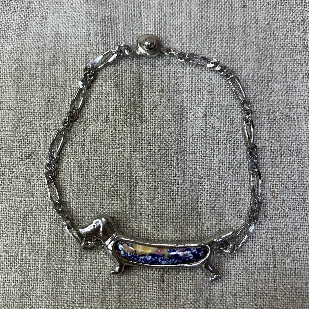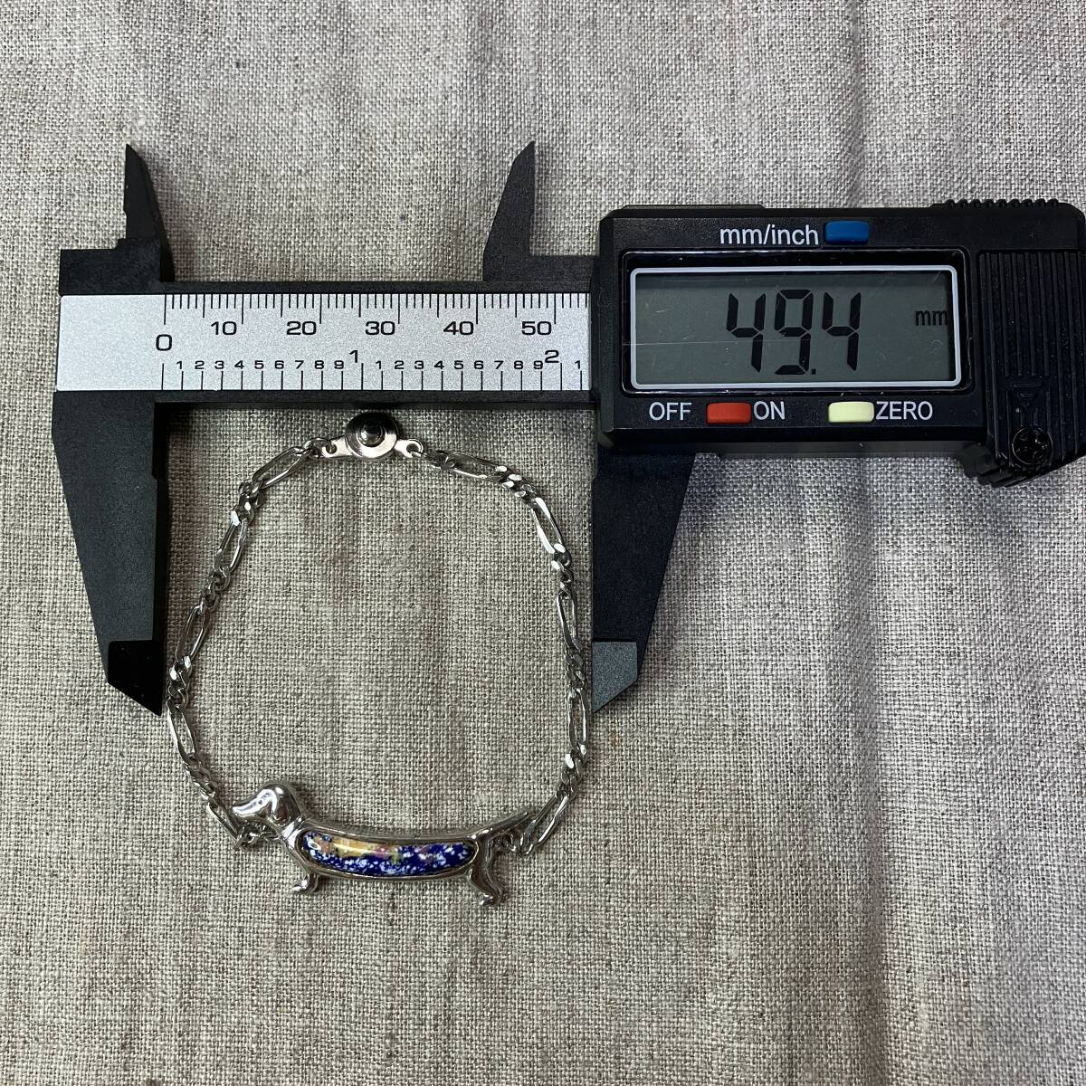 【一点もの】ダックスフンド 犬 モチーフ ブレスレット シルバーカラー 花柄 エナメル 中古 良品