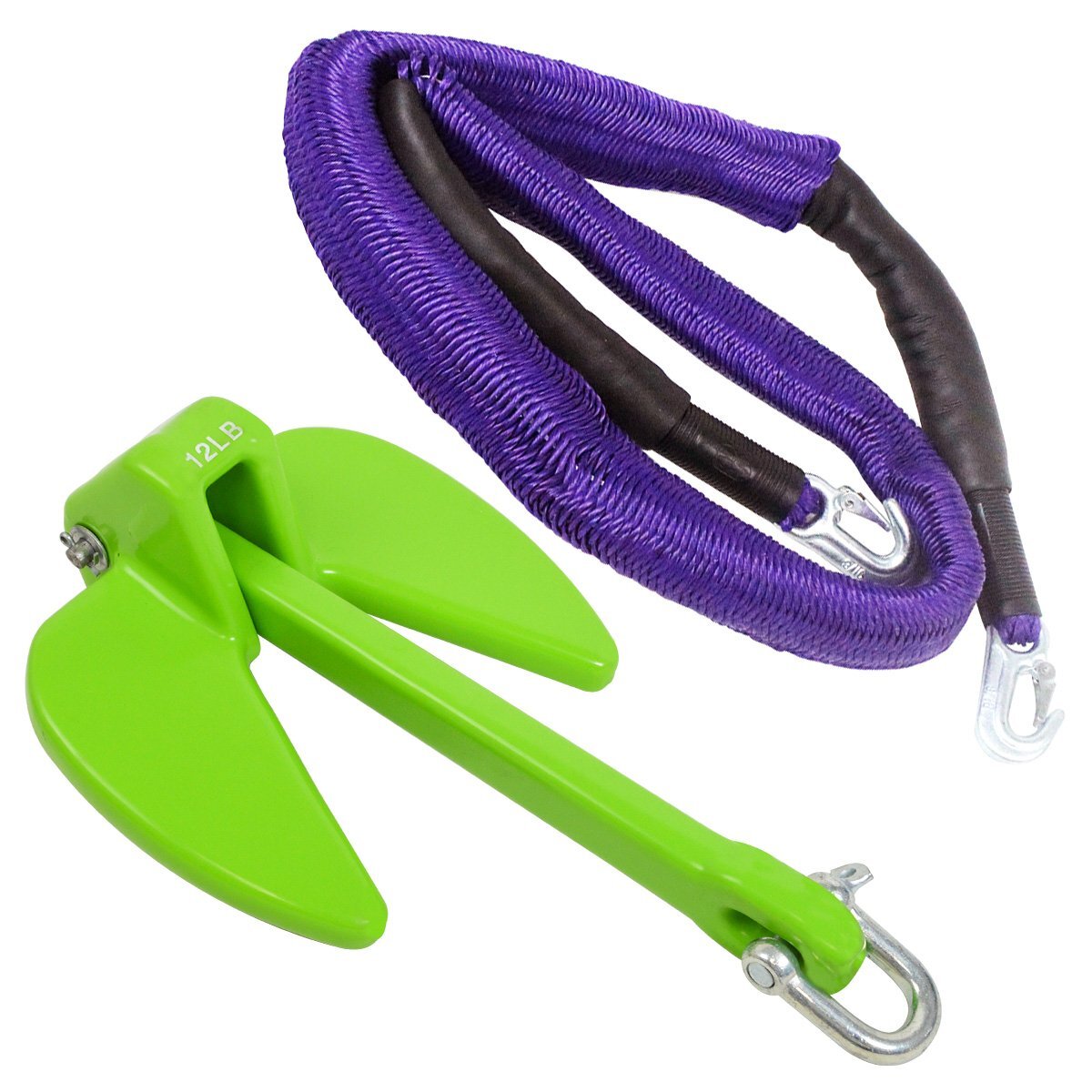 『伸縮ロープ/アンカーセット』ジェットスキー 爪型 アンカー 12LBS 5.5kg 緑 6M フロート のびのび アンカー ロープ 紫