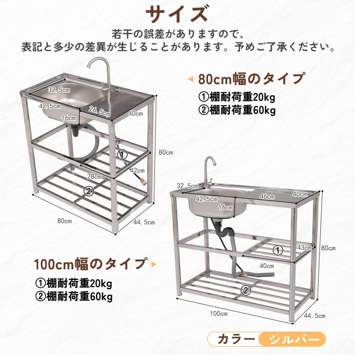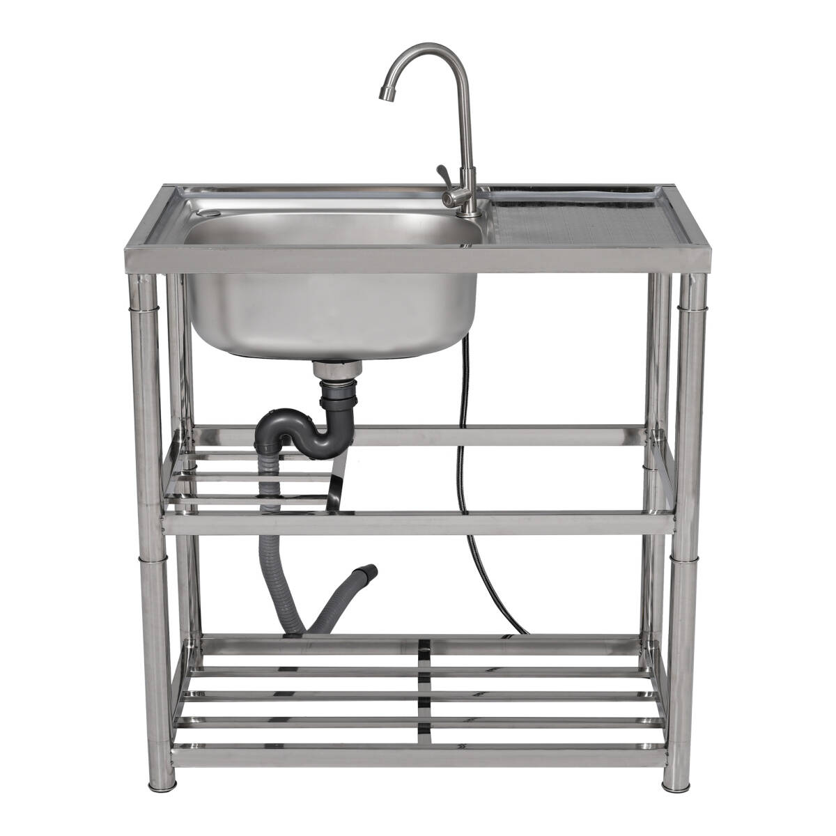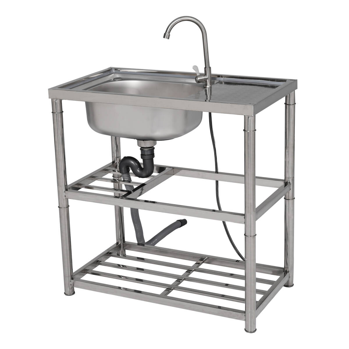 【幅80cm】屋外 流し台 ステンレス製 ガーデンシンク 作業台 キッチン 台所 屋外 簡易 シンク 組み立て簡単 収納棚付 庭【シルバー】