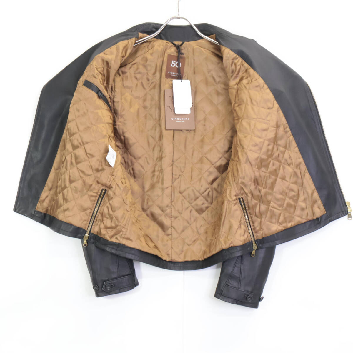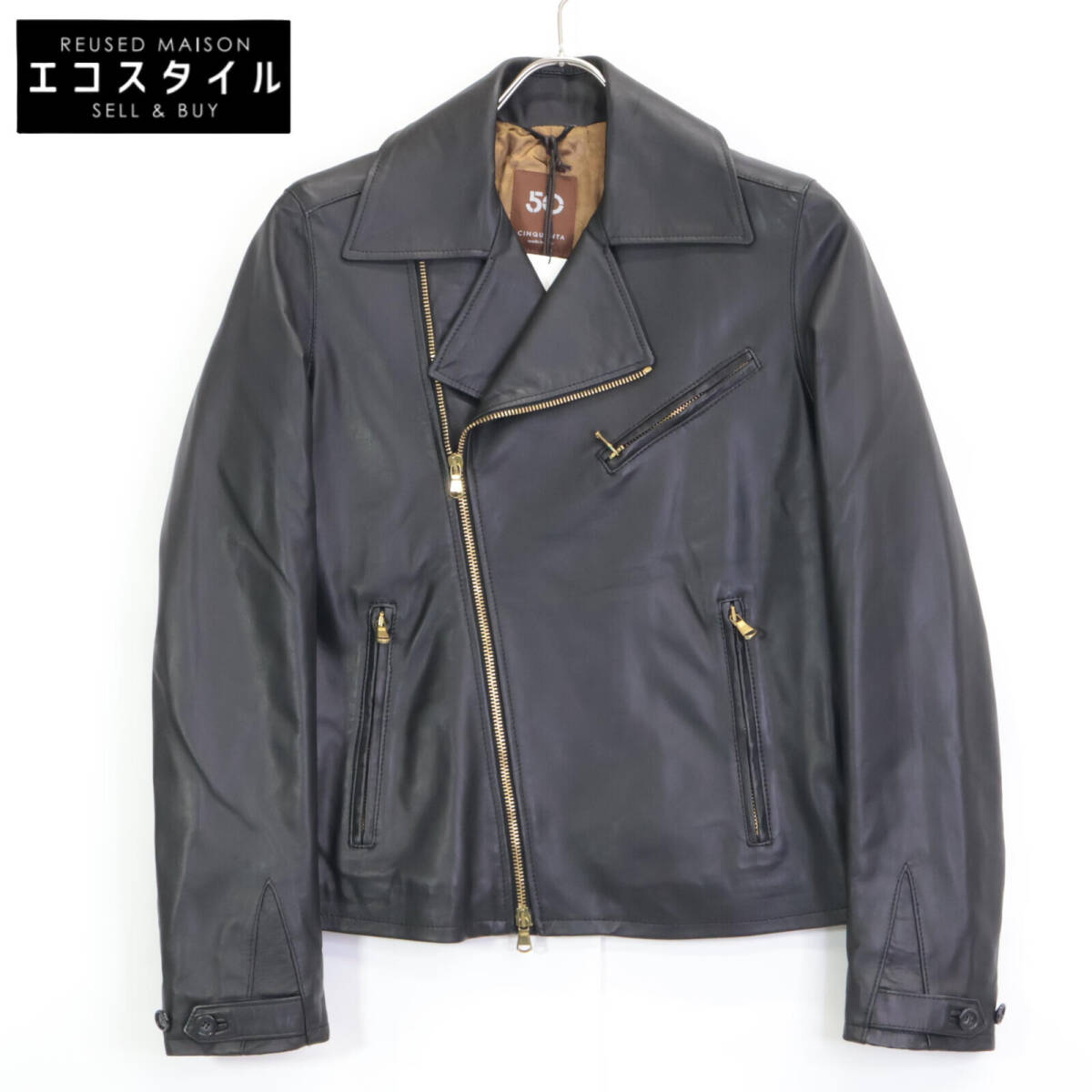1円 CINQUANTA チンクアンタ 2325-1-1118 ブラック ラムレザー ダブルライダースジャケット ジャケット 38 ブラック メンズ