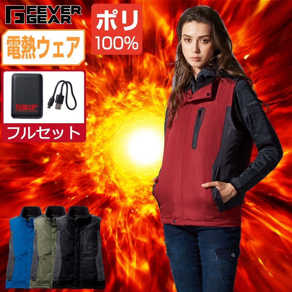 電熱ウェア セット【フルセット】 自重堂 防寒着 ヒートベスト FGA79010 色:レッド サイズ:M