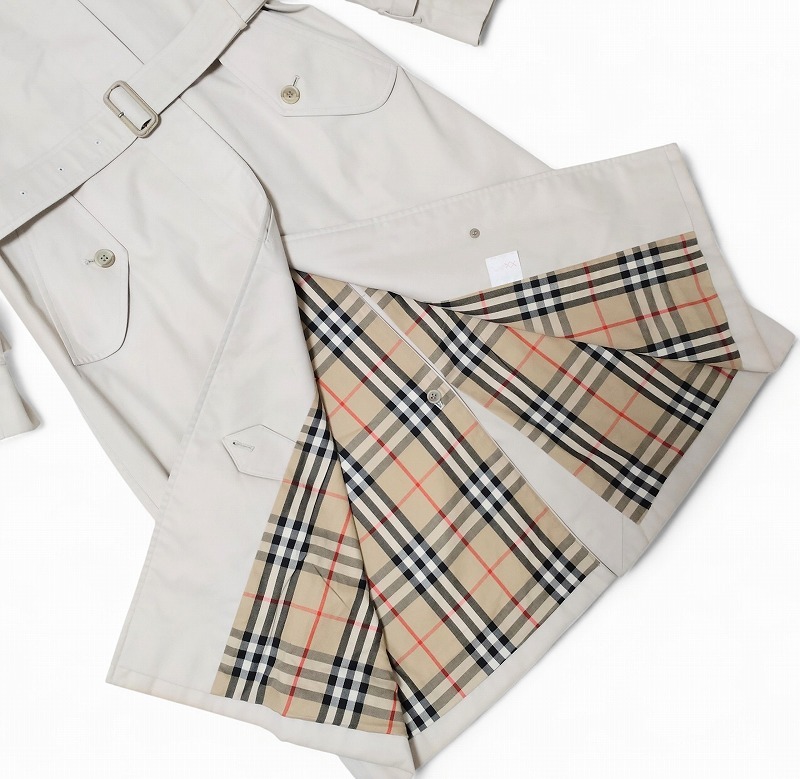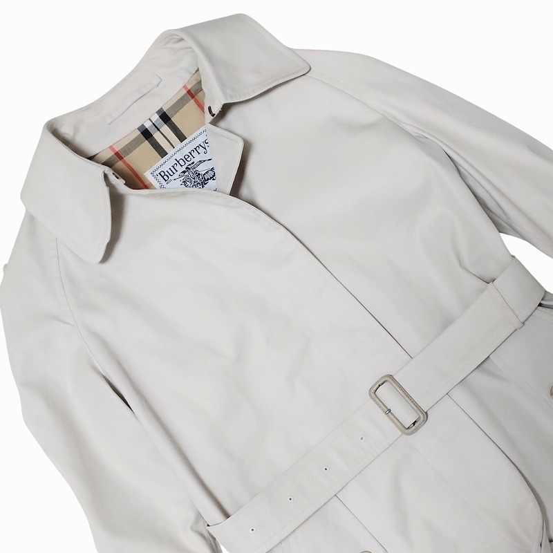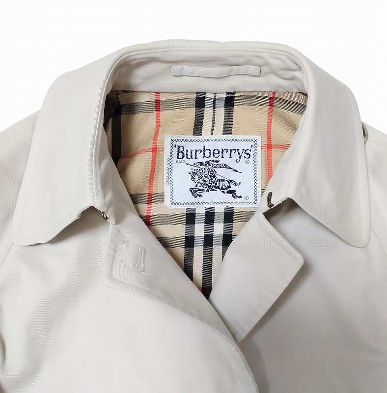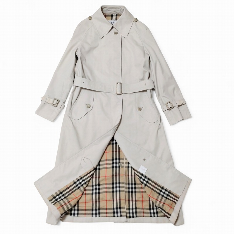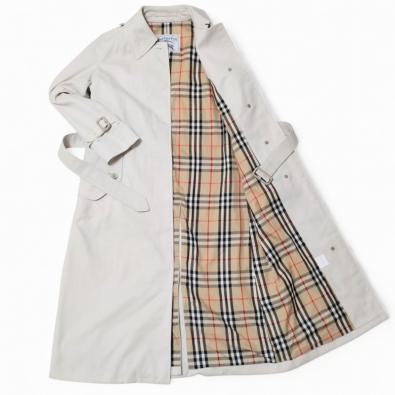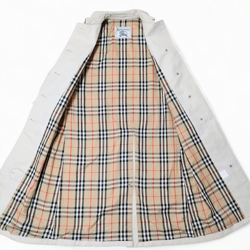 1円~ BURBERRY バーバリーステンカラーコート バルマカーンコート ノバチェック 比翼仕立て ヴィンテージ ホワイト