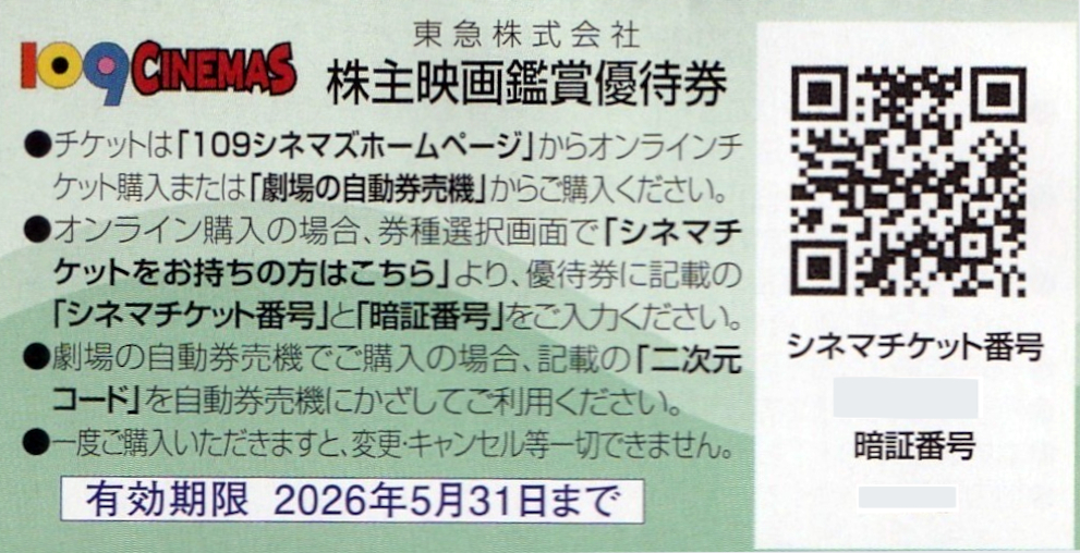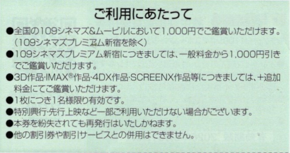 送料無 東急株主優待 109シネマズ株主優待券1000円鑑賞券