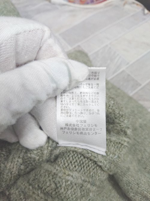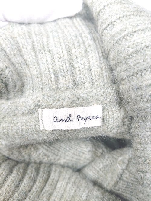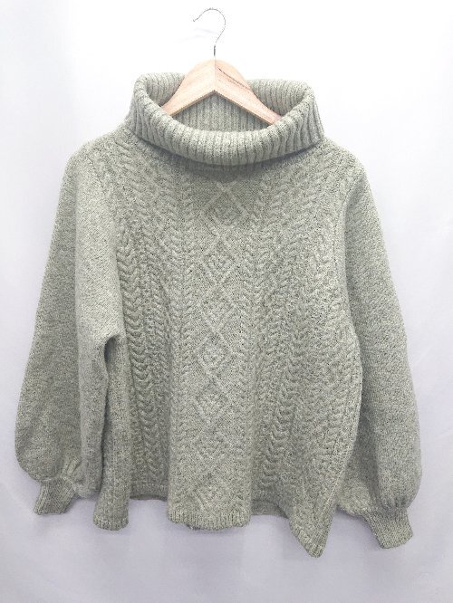 ◇ ⊇ and myera アンド マイラ 長袖 アランニットオフタートル セーター サイズLL カーキ系 レディース E