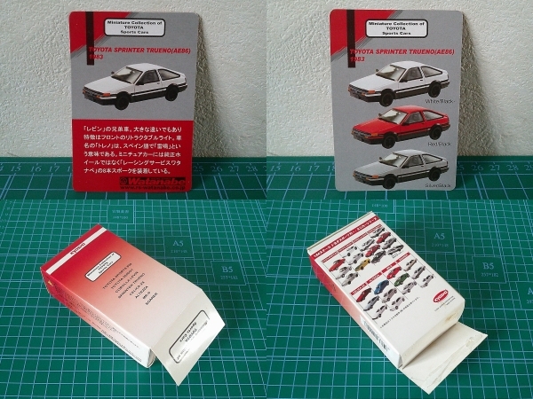 | 商品説明 | ◆ TOYOTA SPRINTER TRUENO AE86型 1983〜 Silver (トヨタ スプリンター トレノ AE86系 昭和58年〜 シルバー) のミニカー・モデルカーです □ メーカー シリーズ ・ Kyosho (京商) ・ Miniturecar Collection of TOYOTA Sports Cars (ミニカーコレクション オブ トヨタ スポーツカー) □ 品番 品名 ・ ケースJANコード 955439 500903 ・ TOYOTA SPRINTER TRUENO AE86型 1983〜 Silver □ スケール 材質 ・ 1/64 ダイキャスト製 □ カラー ・ Silver Metallic/Black (シルバーメタリック/ブラック) □ 特徴 テンロクスポーツの王道 4世代目 スプリンター トレノ AE86型 通称 "ハチロク" モデルは(たぶん) 前期型3ドアハッチバック 1.6 GT-APEX 直4 1.6L DOHC16V 130馬力の4A-GEU型エンジンを搭載 ホイールは純正では無くRSワタナベの8スポークを履いています ◆ 状態 ・ 個人的には良好な部類だと思います ・ 長期保管品 新品購入後15年くらい経過していると思います ・ 未展示品です ・ ブリスターケースは圧着式、撮影の為開封しました ・ 画像の物が全てです ・ 元箱は底開けです きれいには開いていません 元箱の状態を重視される方は入札をお控えください ・ コレクションカードは反りがあります ・ ブリスターケースは擦れがあります ・ 経年品に付、新同品を期待される方は入札をお控えください | ||