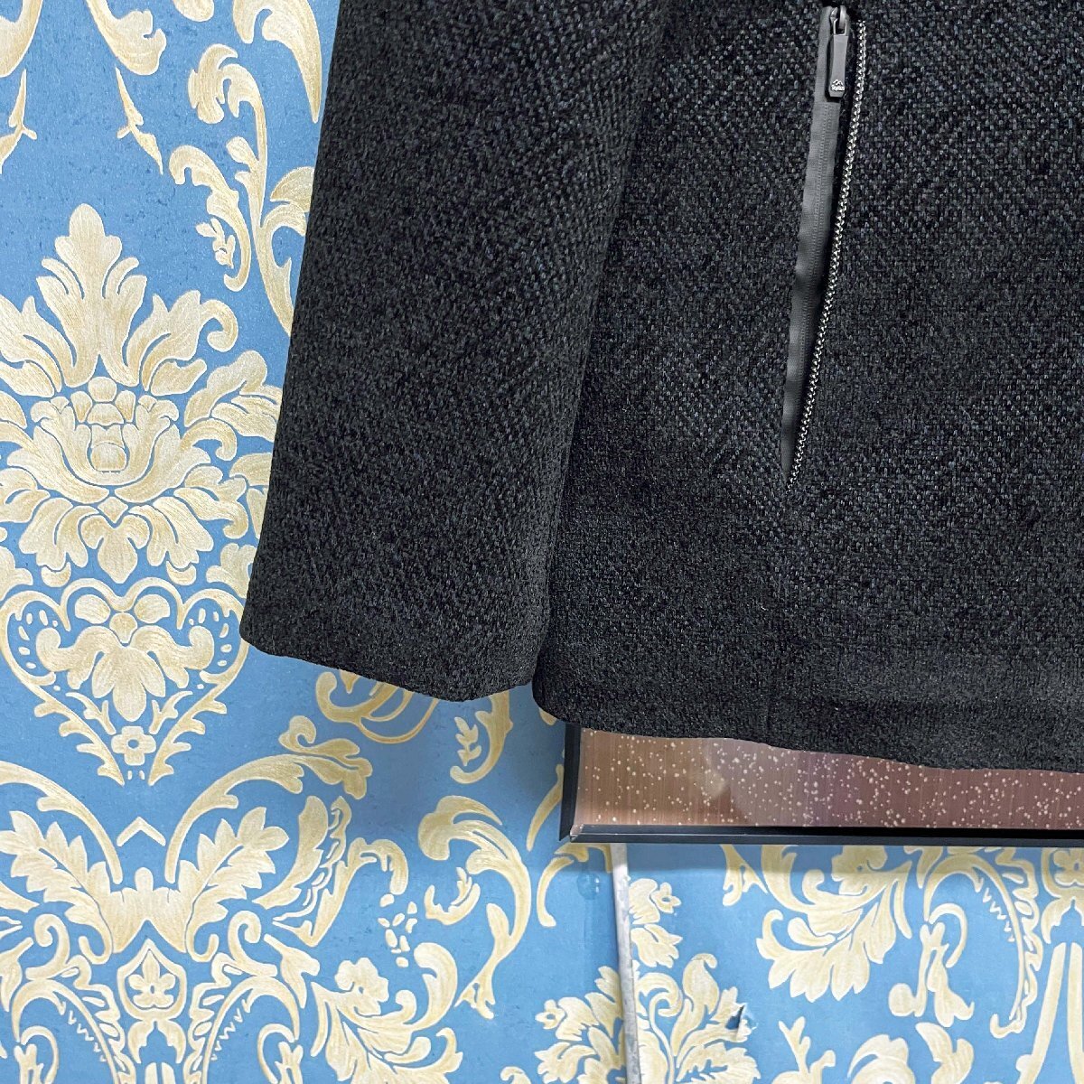 シンプルな中にもカシミヤならではの上品さがあります。袖に飾りのボタンがあり、エレガンスな雰囲気を醸し、すっきりとした落ち着いた印象に仕上がっています。フロントにジッパー付きポケットが二つあり、小物類を保管しやすく、日常生活で活用度の高いアウターです。