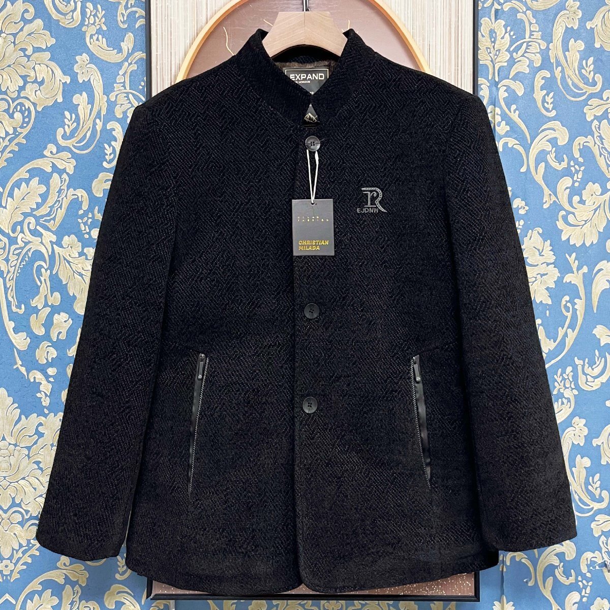 定価8万★christian milada・ミラノ発・ジャケット★カシミヤ100% 保温 防風 裏起毛 ソフト 無地 ブルゾン ビジネス チェスターコート 通勤 秋冬 L/48サイズ