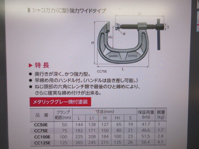 中古品: 9本セット シャコ万(C型) 100mm 強力ワイドタイプ