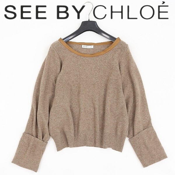 | 【HB263】◆SEE BY CHLOE シーバイ クロエ シルク使い ウール ニット セーター ライトブラウン 40 | |