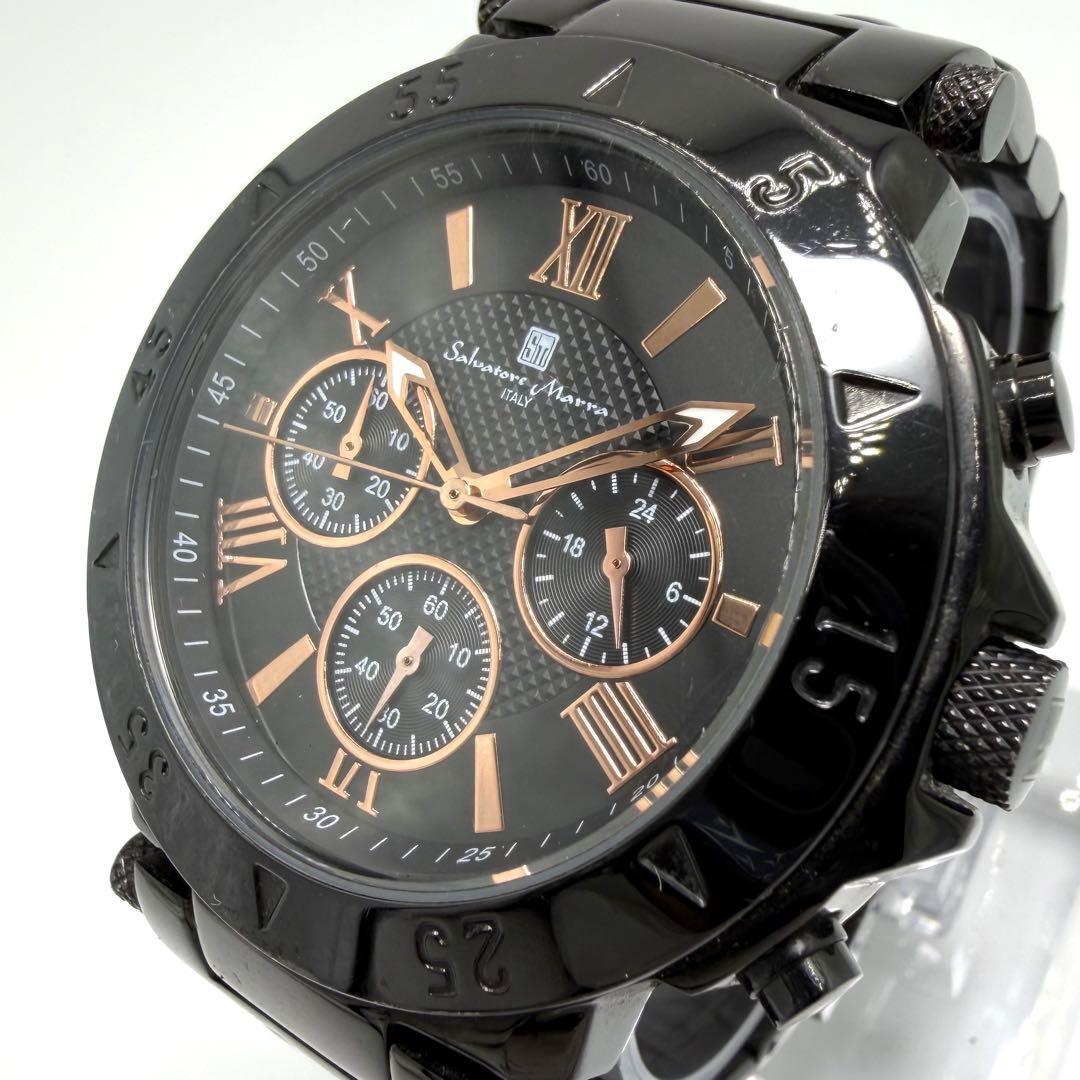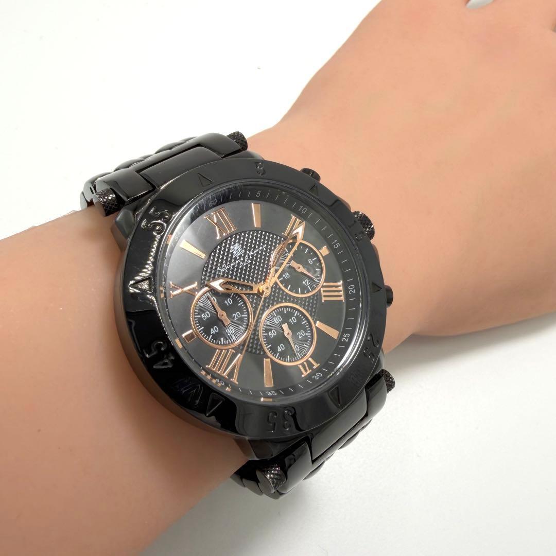 腕時計 メンズ クロノグラフ 黒文字盤 ローマン