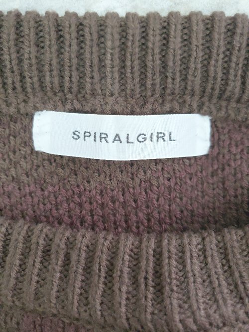 ◇ ⊇ SPIRALGIRL 総柄 オーバーサイズ 長袖 ニット セーター サイズF ブラウン バーガンディ系 レディース E