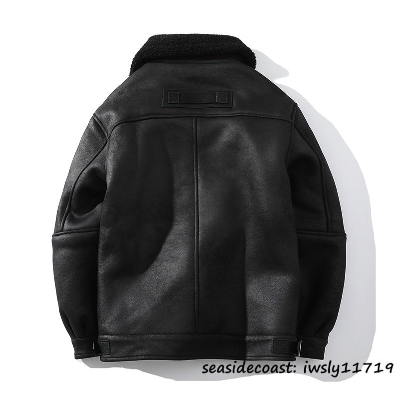 絶賛◆定価13万 レザージャケット メンズ 厚手 防寒 裏起毛 ムートンコート ライダース 革ジャン ファーコート 秋冬 ジャケット 毛皮 M