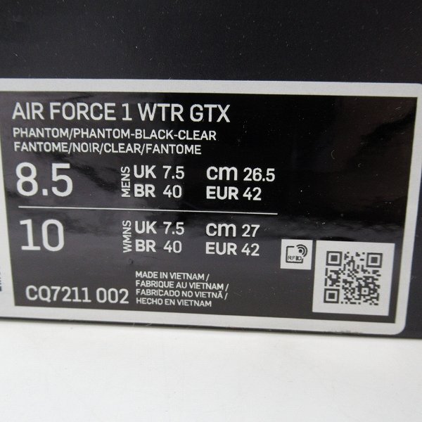 | NIKE/ナイキ AIR FORCE 1/エア フォース 1 WTR GORE-TEX/ゴアテックス CQ7211-002/26.5 /080 | |||||||||||||||||||||||||