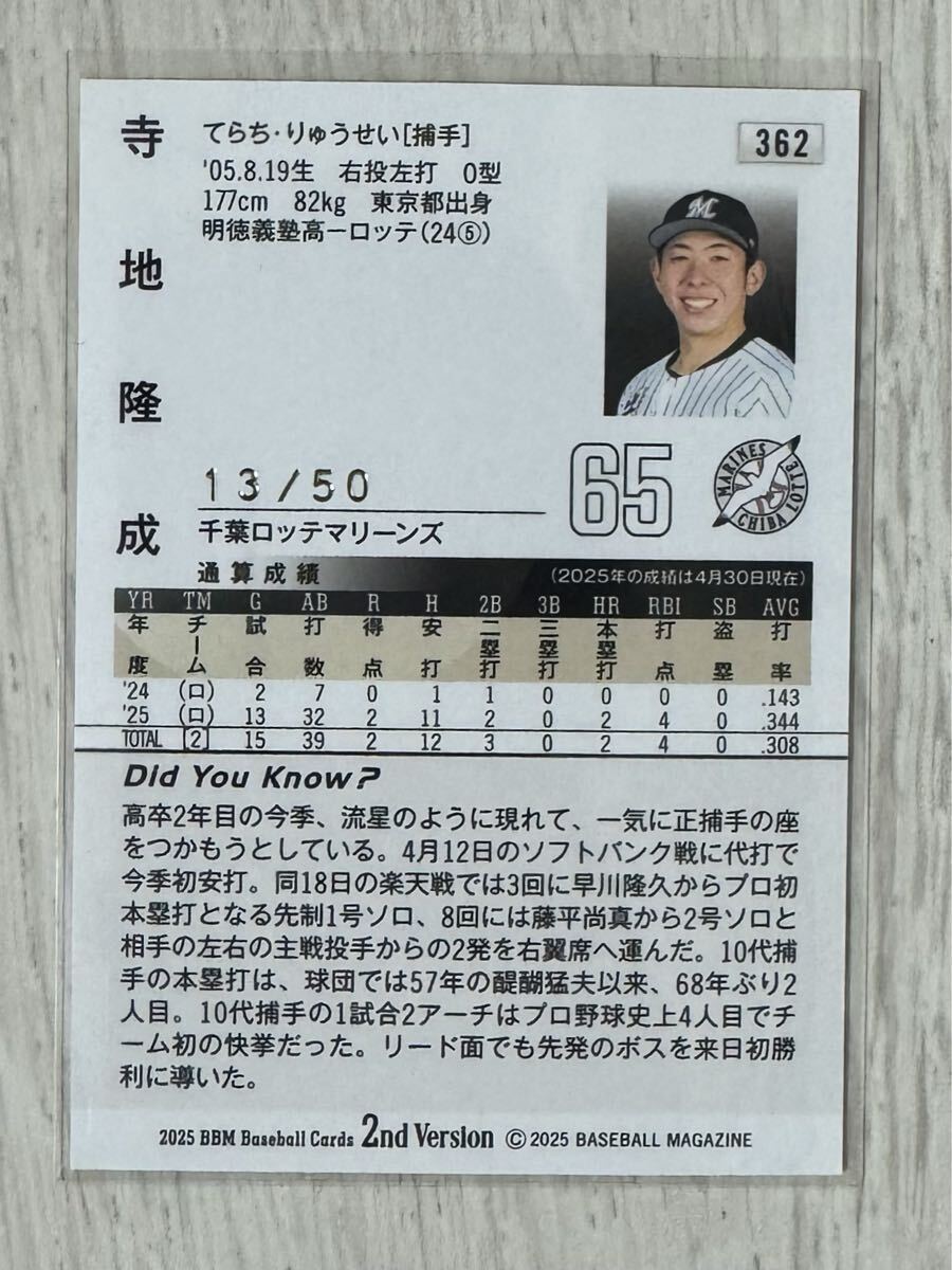BBM 2025 2nd 寺地隆成 50枚限定 ホロ箔サインカード 千葉ロッテマリーンズ ※防水梱包発送