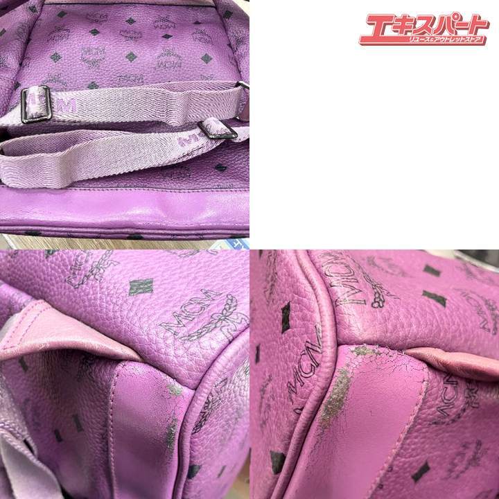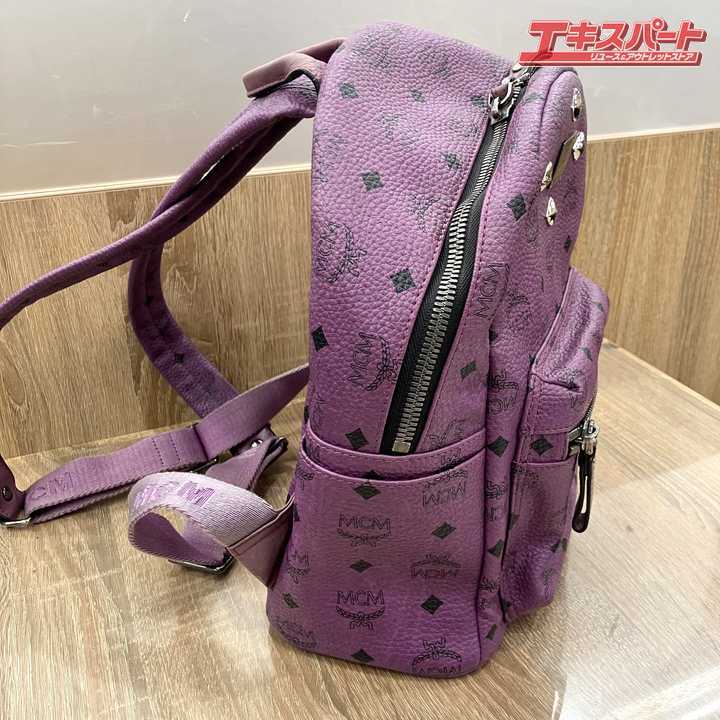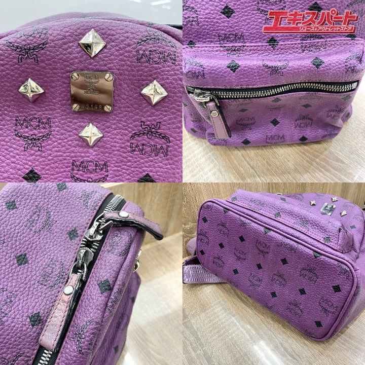 MCM エムシーエム スタッズ レザー リュックサック 紫 パープル コニャック