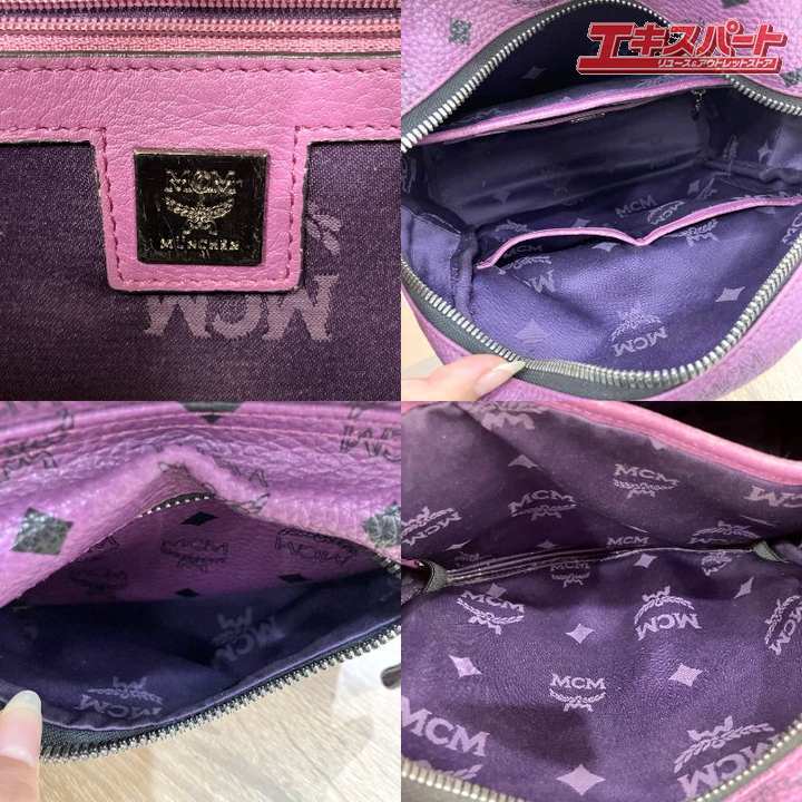 MCM エムシーエム スタッズ レザー リュックサック 紫 パープル コニャック ミスマ店
