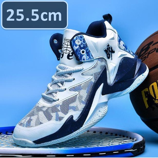 メンズ スニーカー ブルー 25.5cm 靴 シューズ 防滑 バスケットシューズ 通勤 通学 旅行 【241】