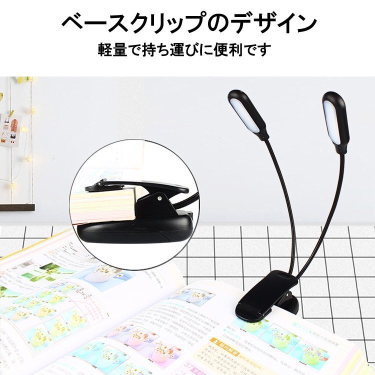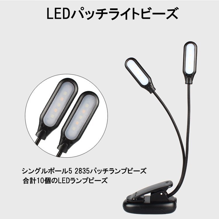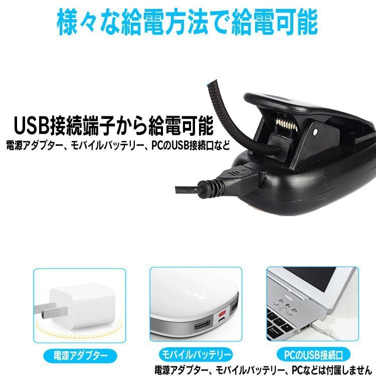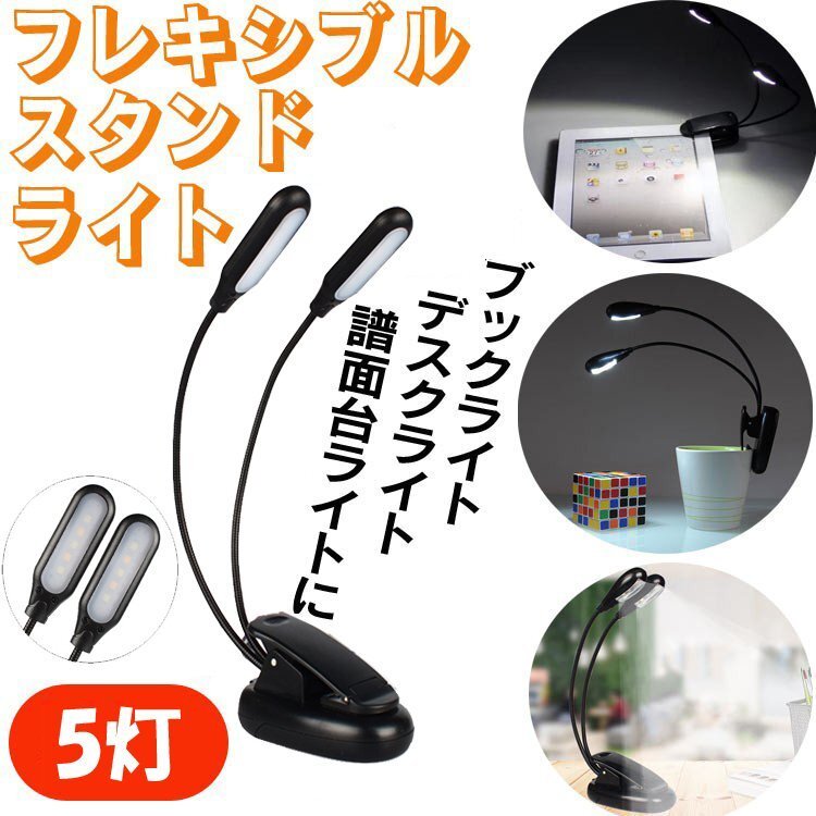 ◆クリップ型フレキシブルスタンドライト 5灯LED 2個 ブックライト USB充電 点灯モード調節 暖色/白色切替可 BOOKUSB55/USB充電式