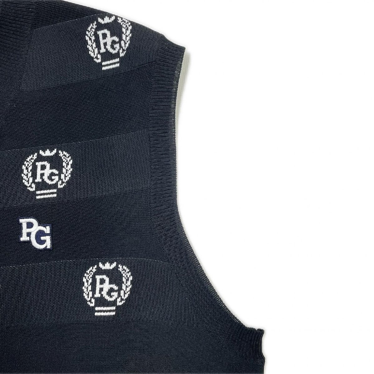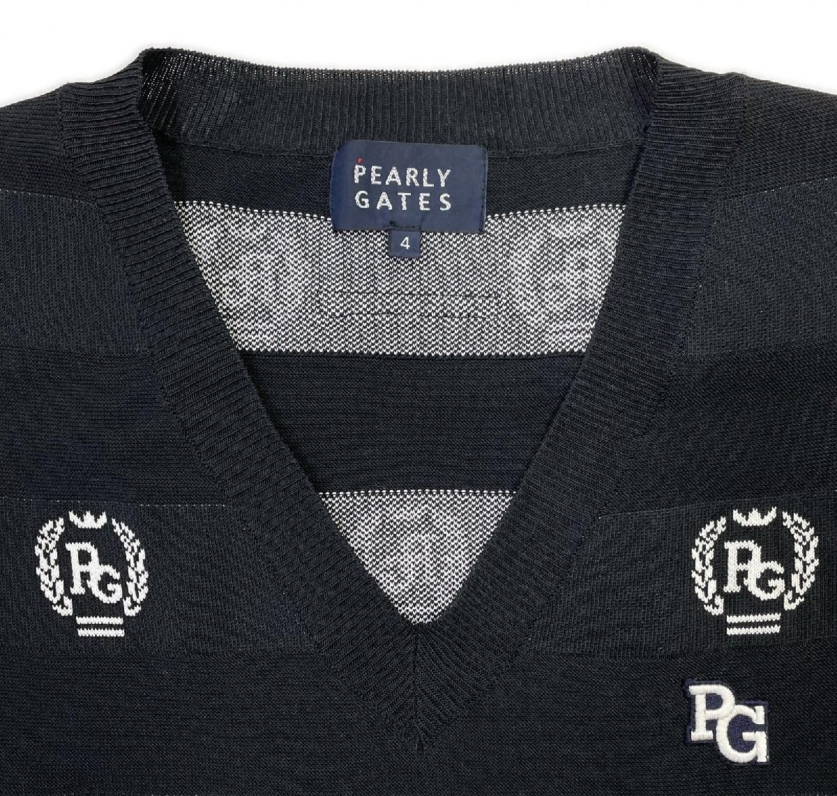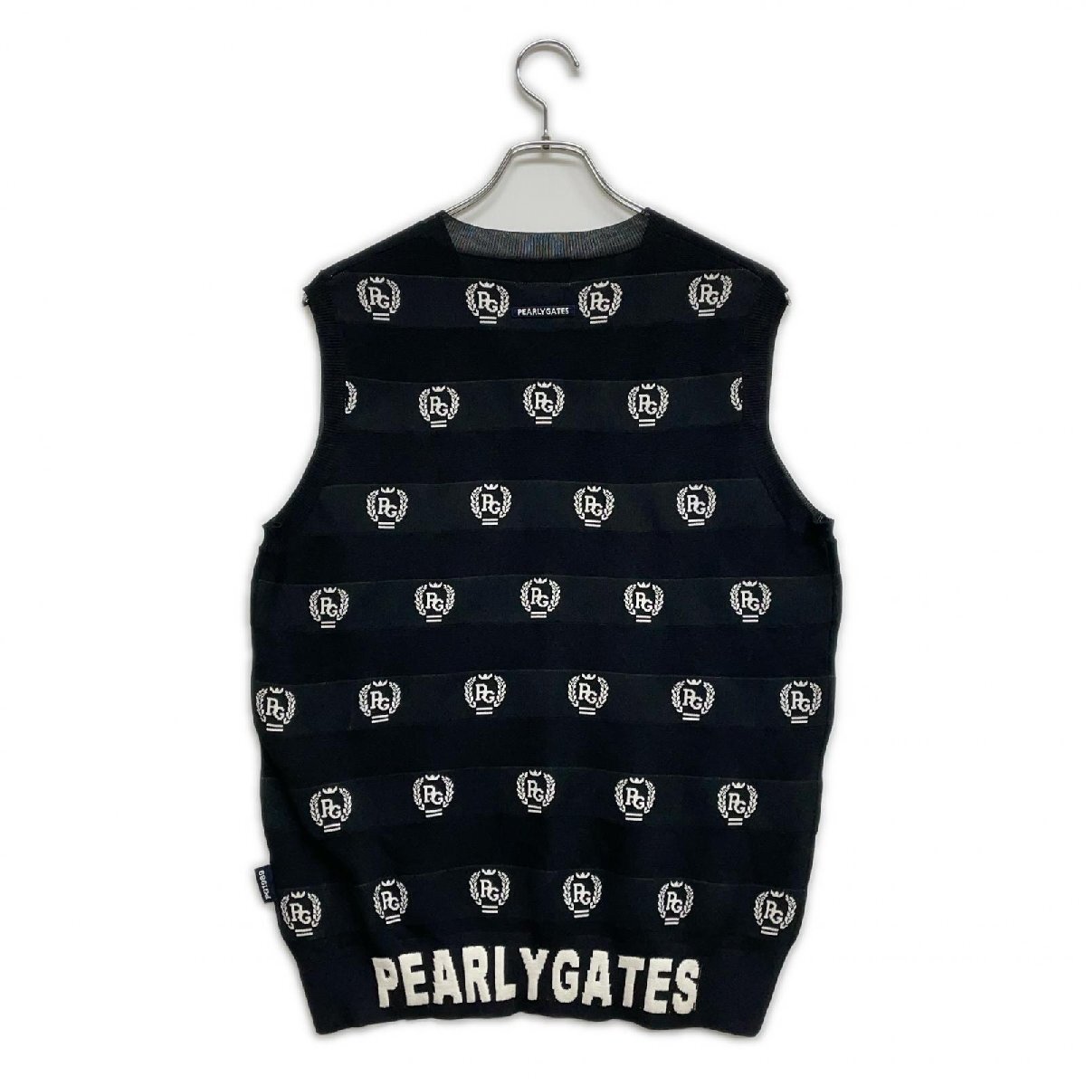 coco 中古 パーリーゲイツ PEARLY GATES メンズ ベスト 4(M) 黒 ブラック Vネック 薄手 ニット ボーダー 総柄 ネコポス発送可 K024475