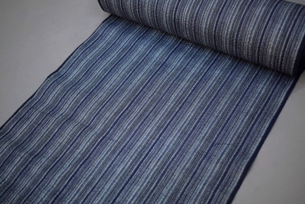 A21-1【凛々】即決 新古品 阿波正藍 しじら織 ゆかた反物 紺 縞 未仕立て品