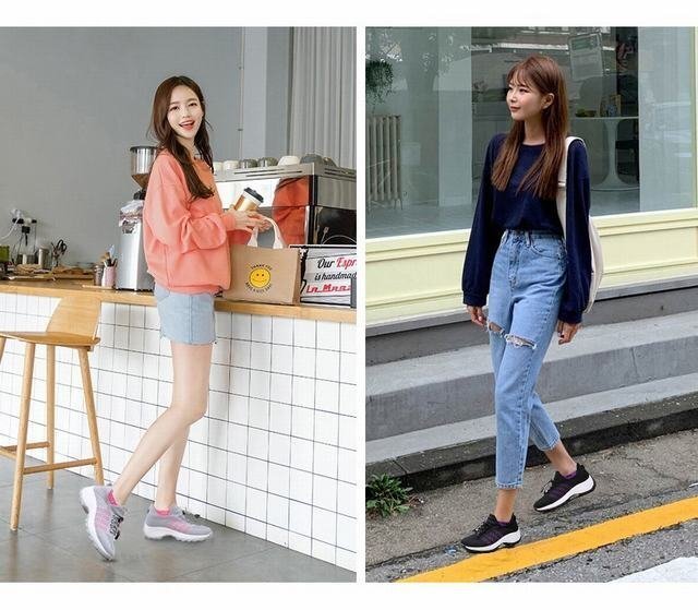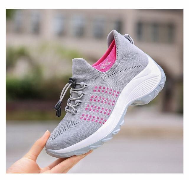 スニーカー レディース クッションシューズ 厚底スニーカー ダイエットシューズ 身長アップ 靴 グレー 23.5cm