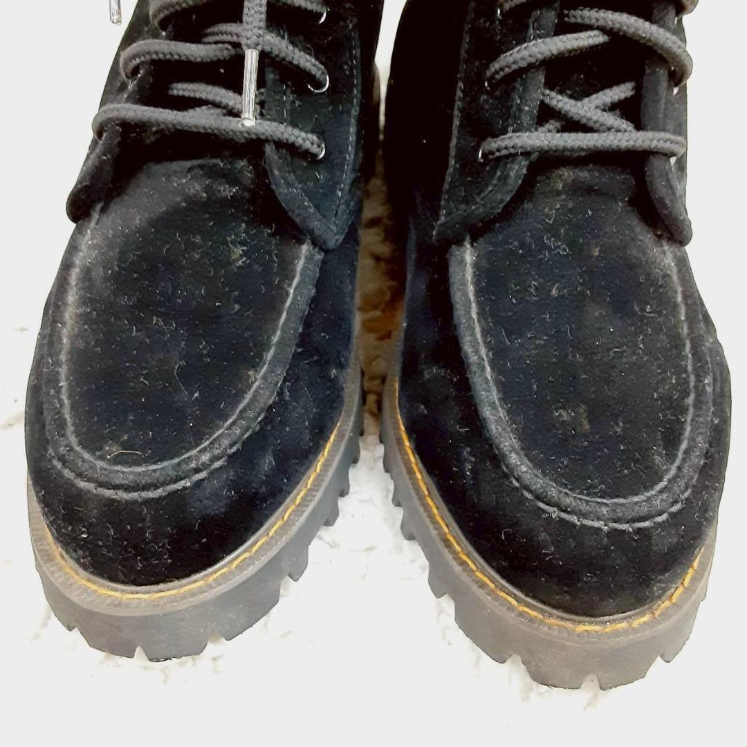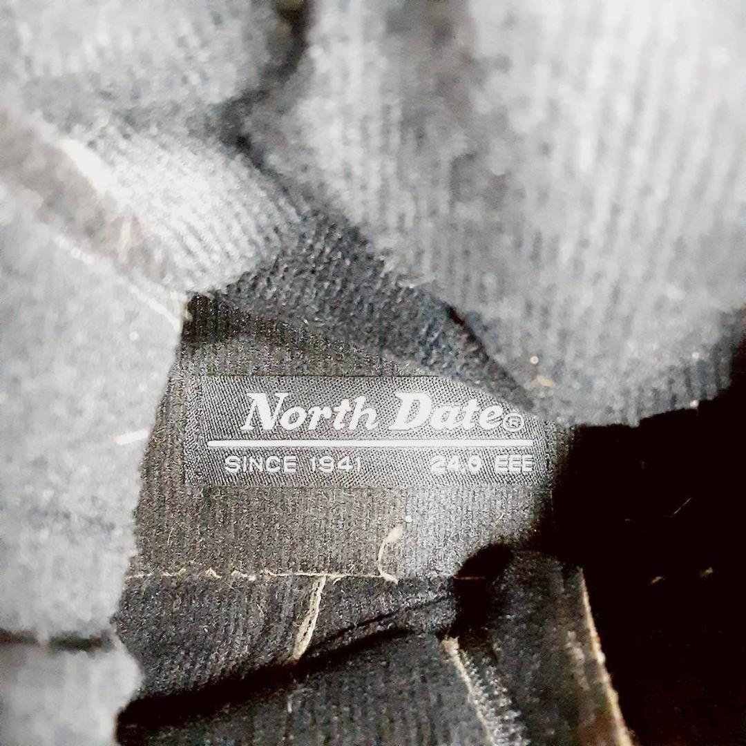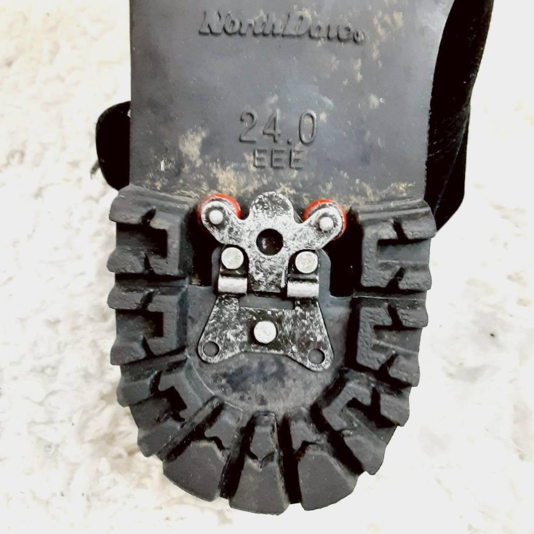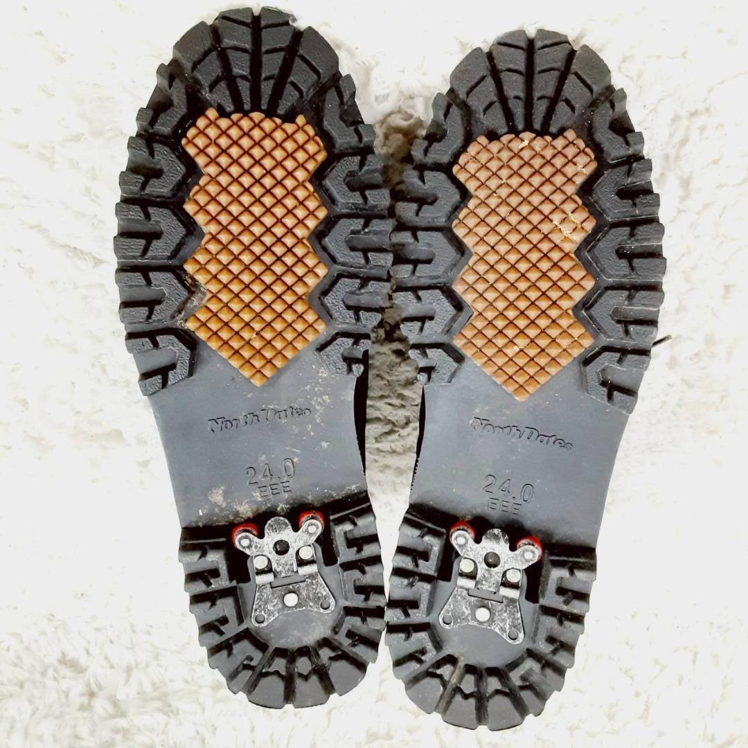美品 24㎝◎NORTH DATE ノースデイト スノーブーツ ブラック 黒 サイドジップ スウェード スパイク 滑り止め付き
